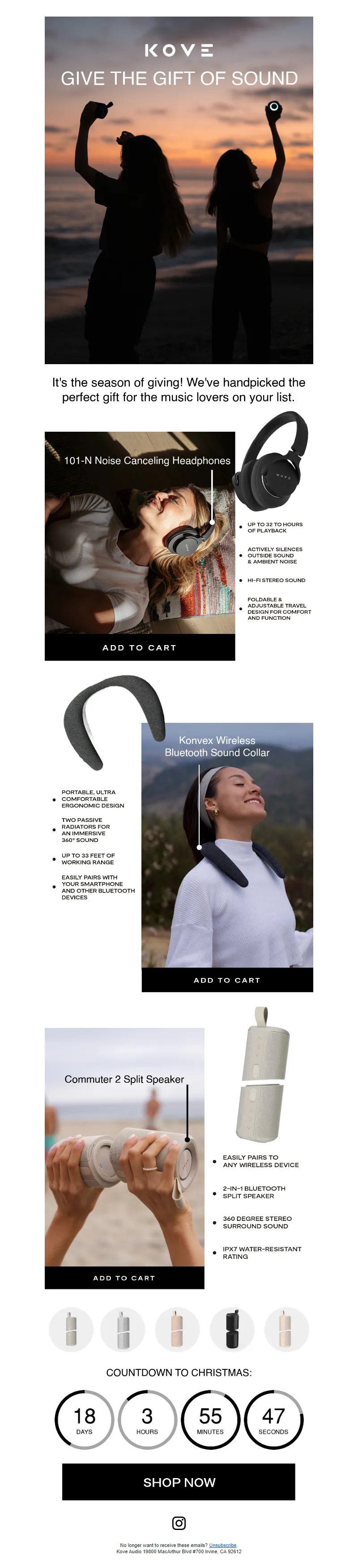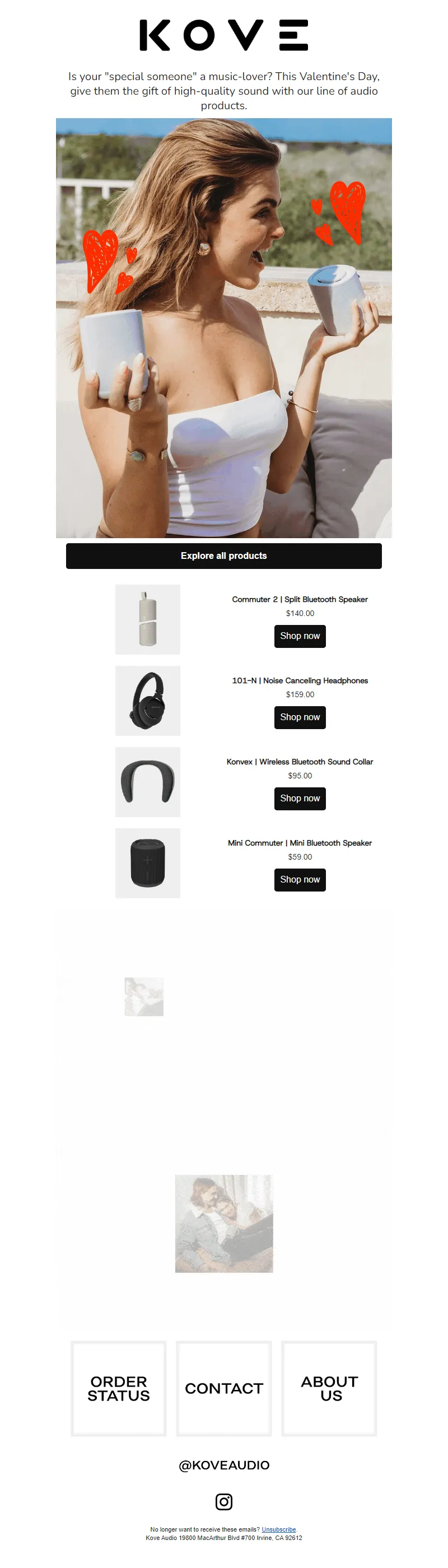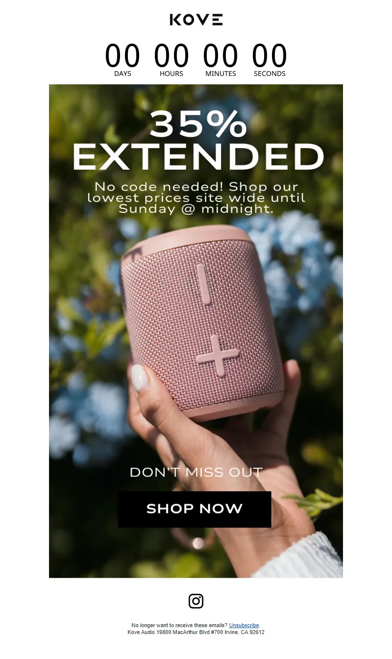 Explore campaign email examples from KOVE Audio, including promotions, newsletters, and product announcements. Built as a reference library for studying real ecommerce email execution.