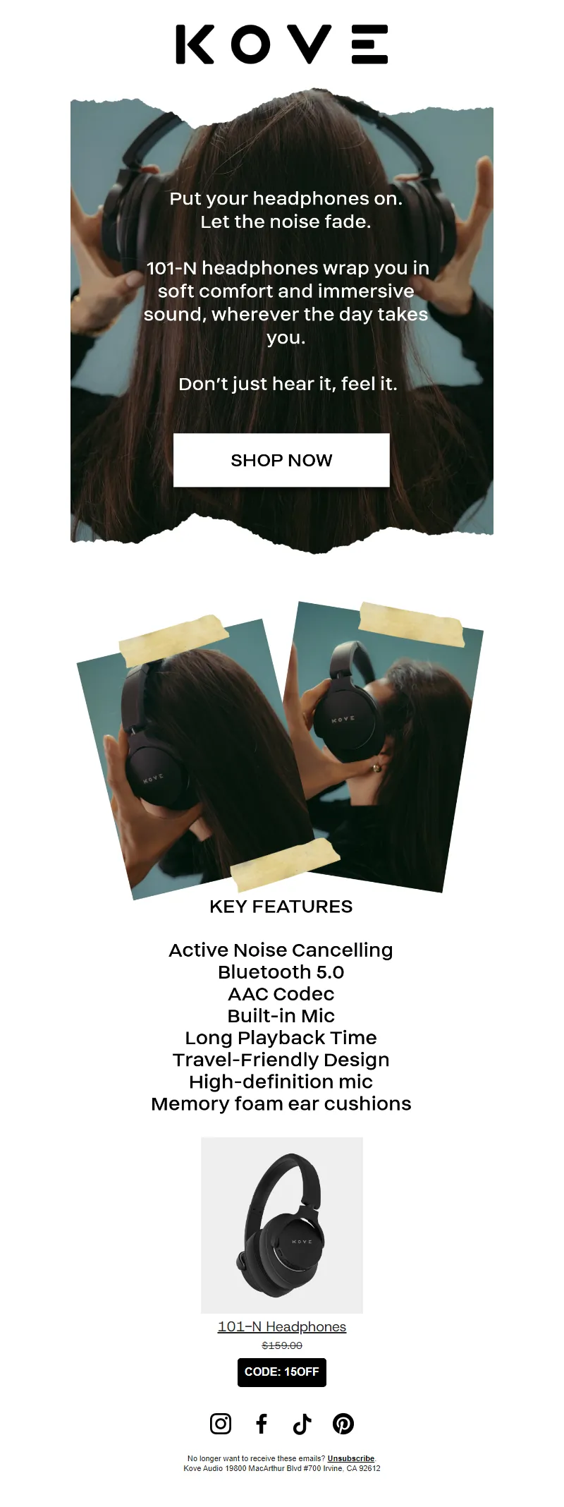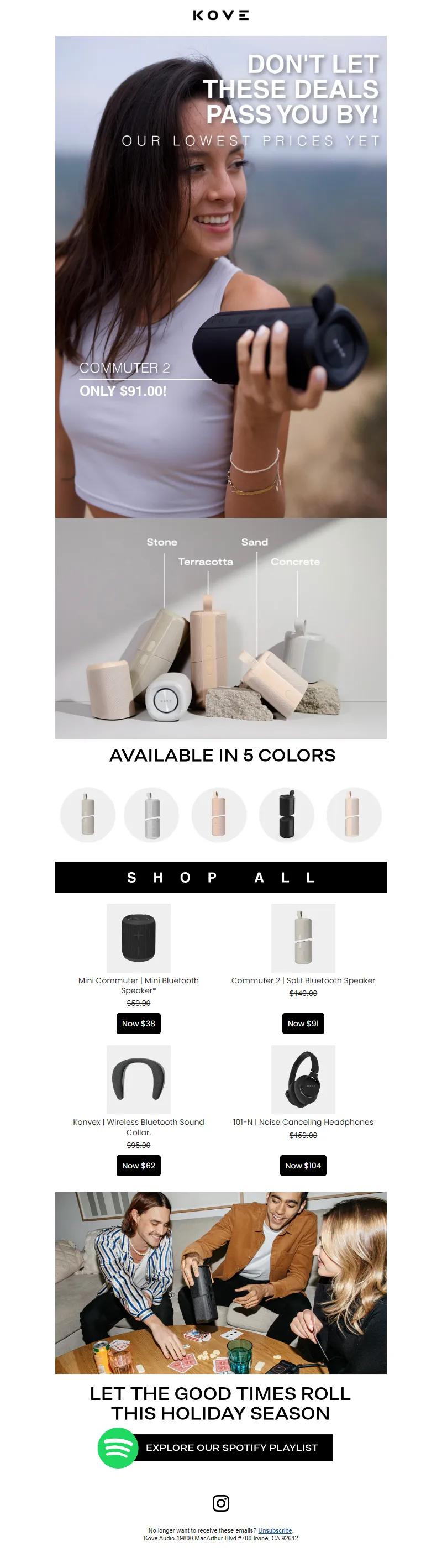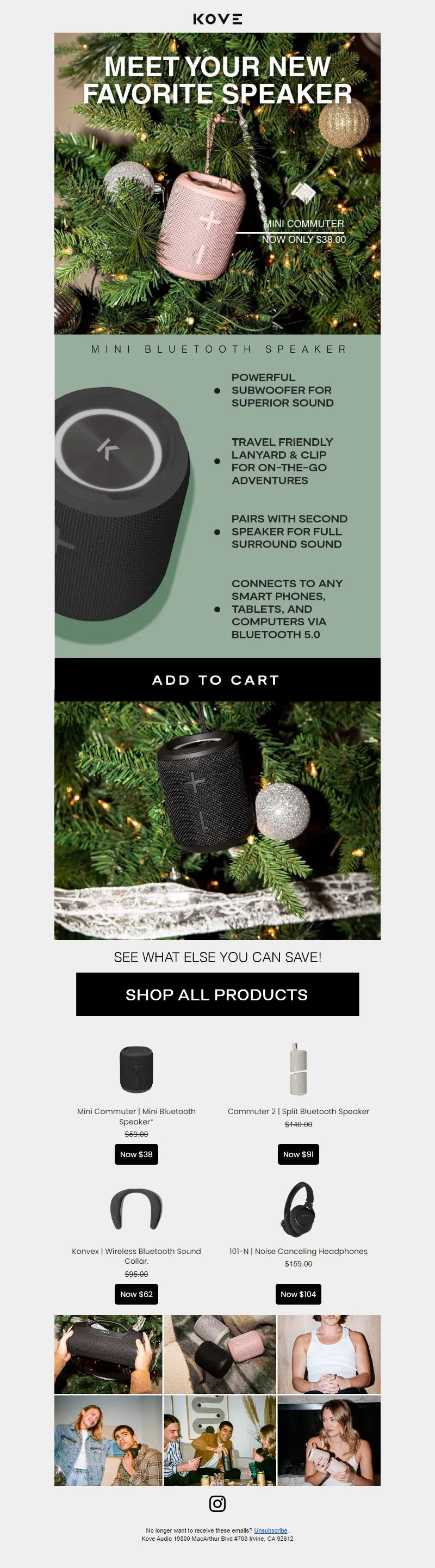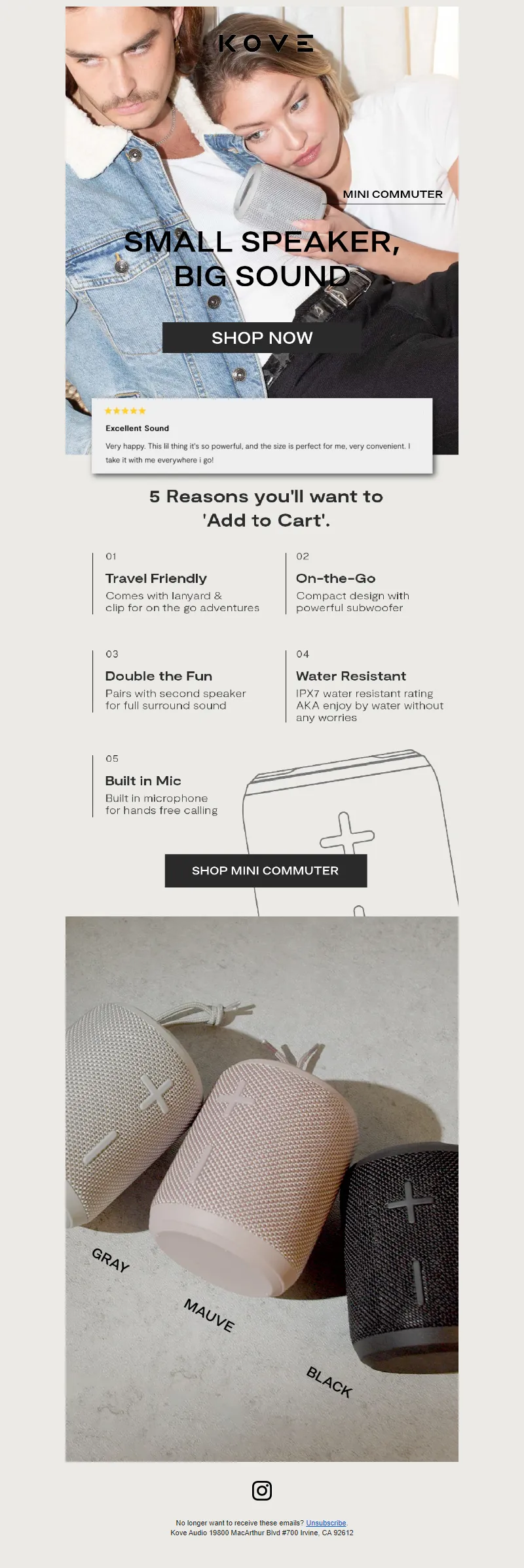 Explore campaign email examples from KOVE Audio, including promotions, newsletters, and product announcements. Built as a reference library for studying real ecommerce email execution.