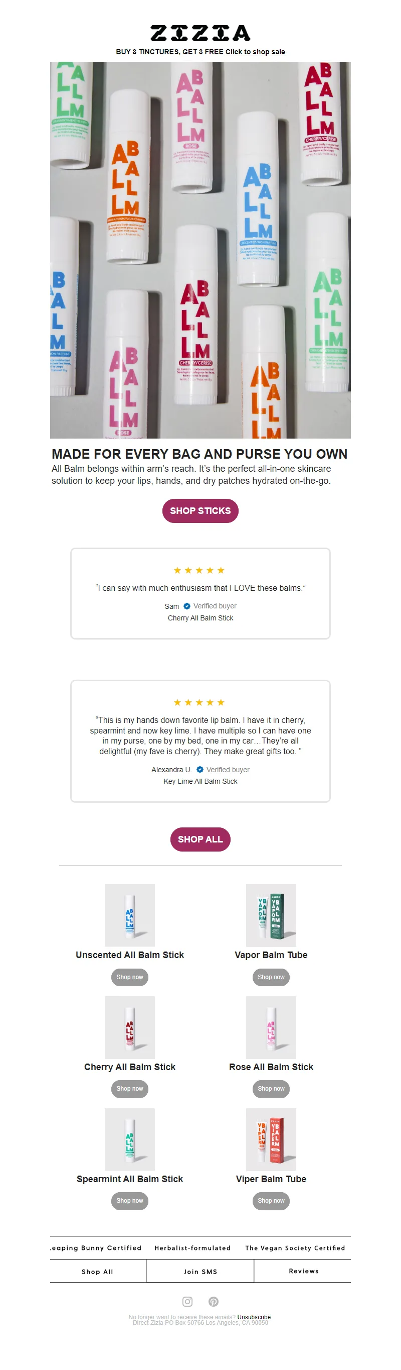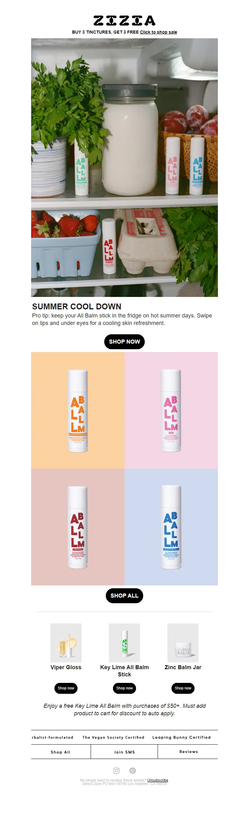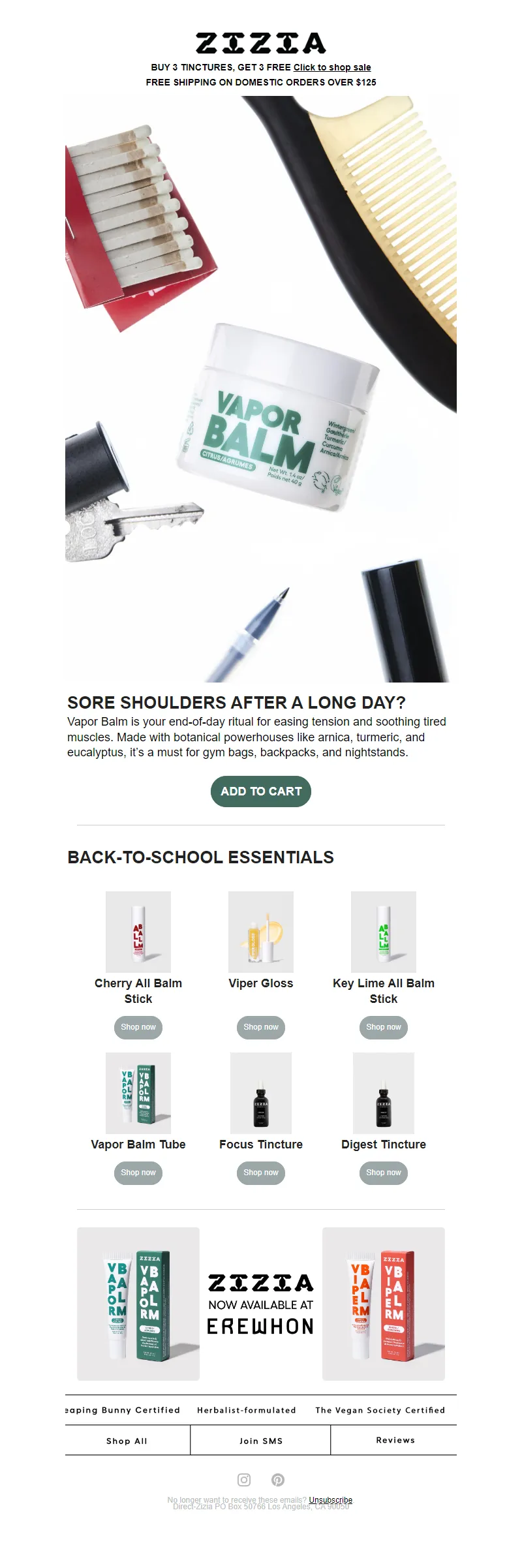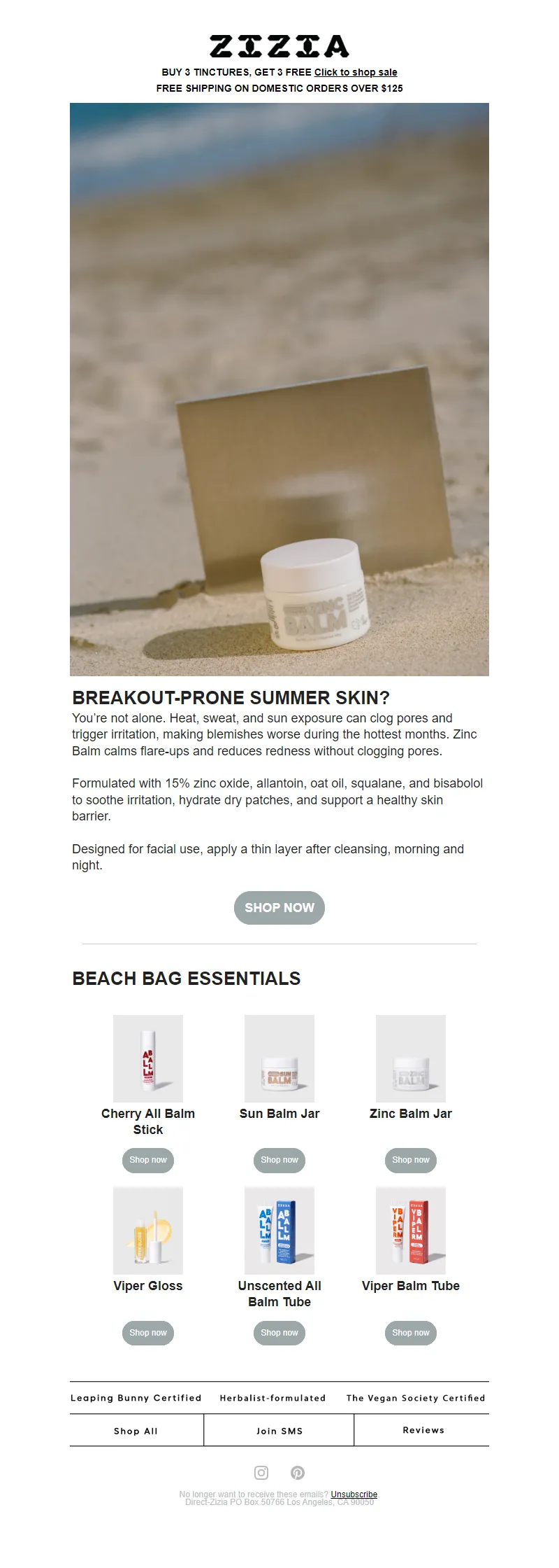 Explore campaign email examples from Zizia Botanicals, including promotions, newsletters, and product announcements. Built as a reference library for studying real ecommerce email execution.