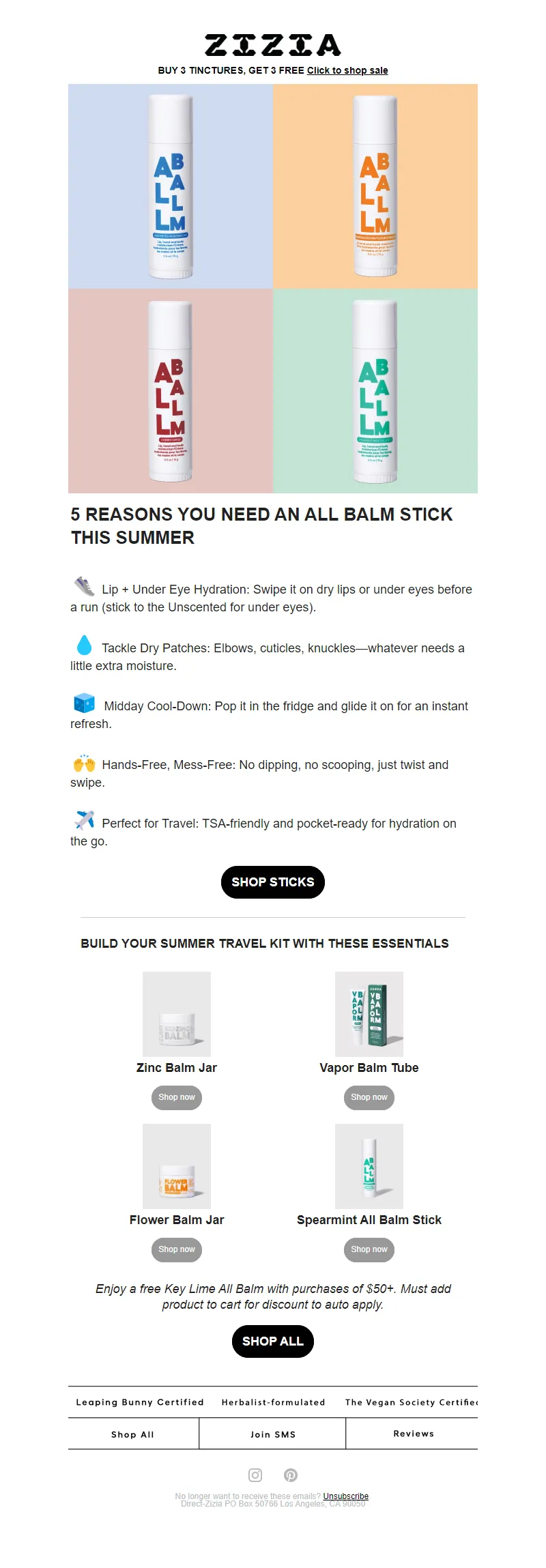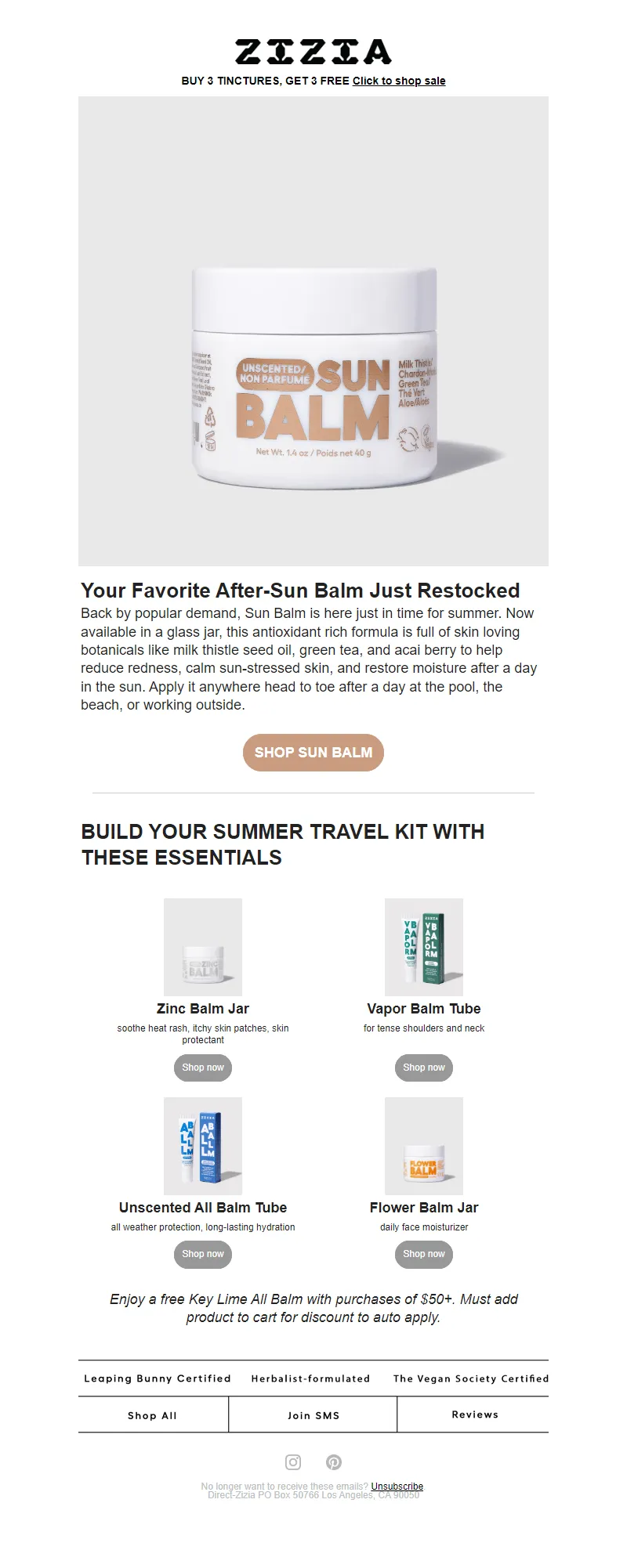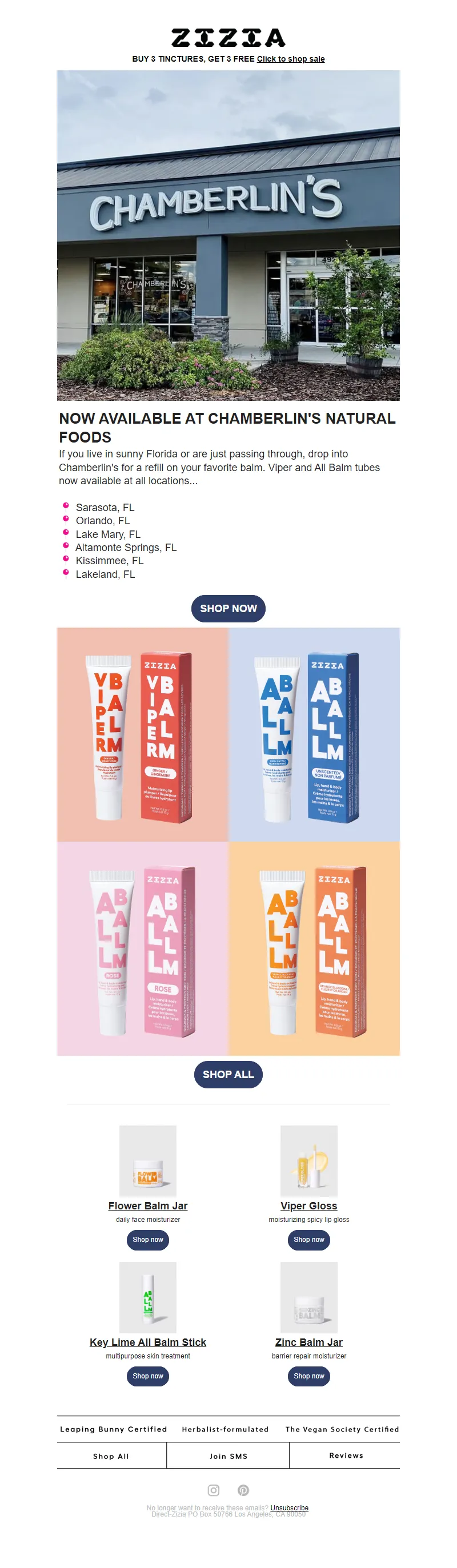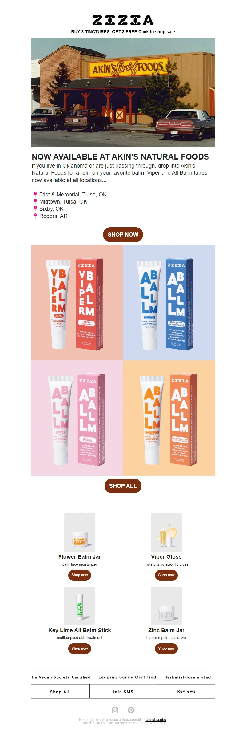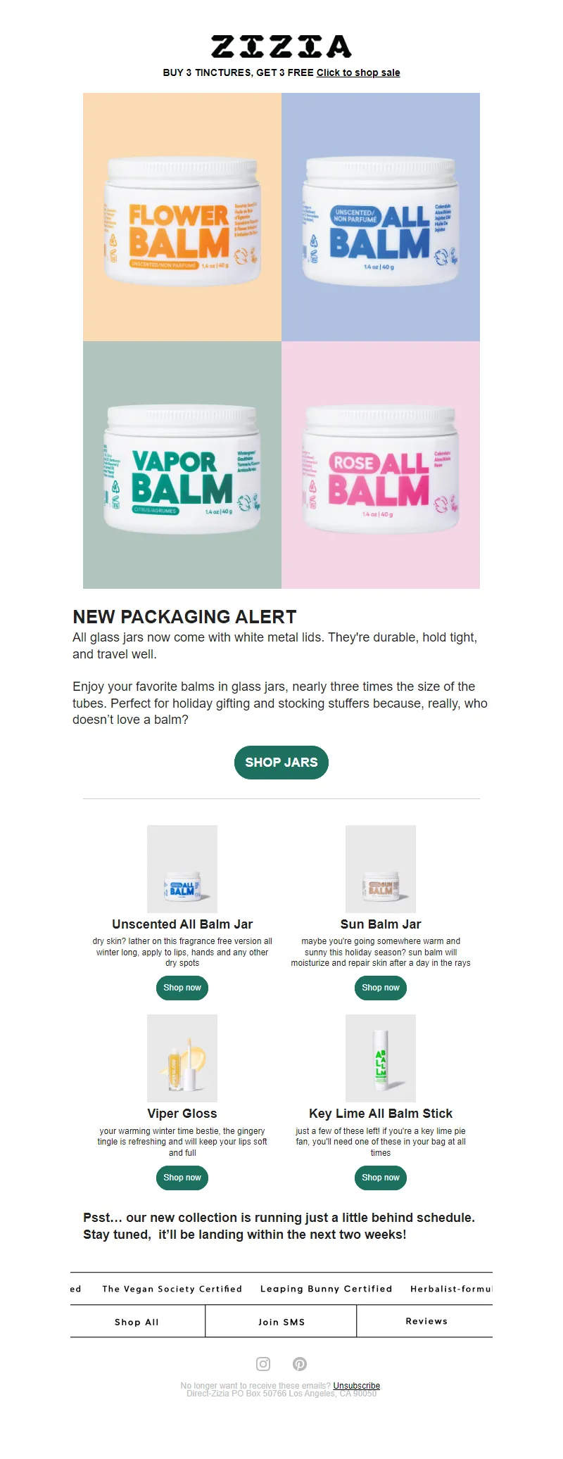Explore campaign email examples from Zizia Botanicals, including promotions, newsletters, and product announcements. Built as a reference library for studying real ecommerce email execution.