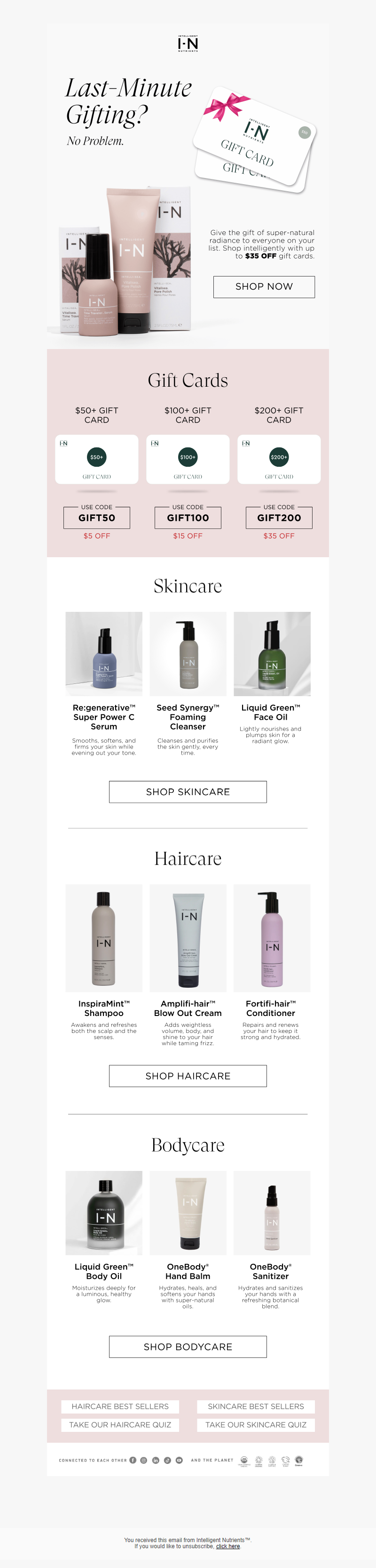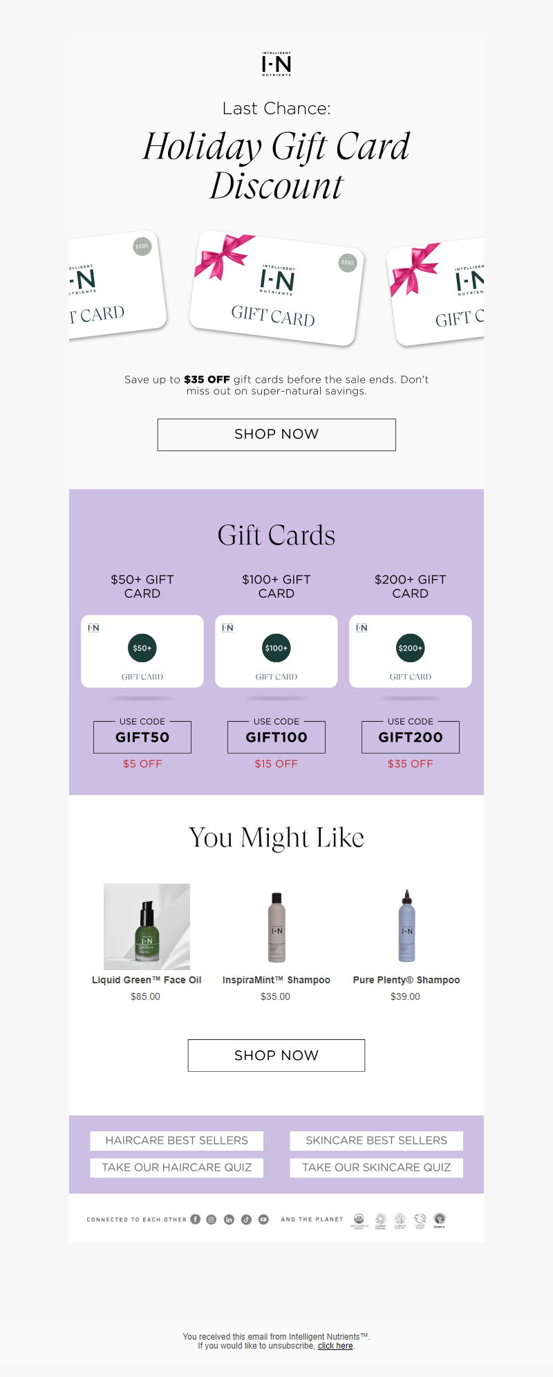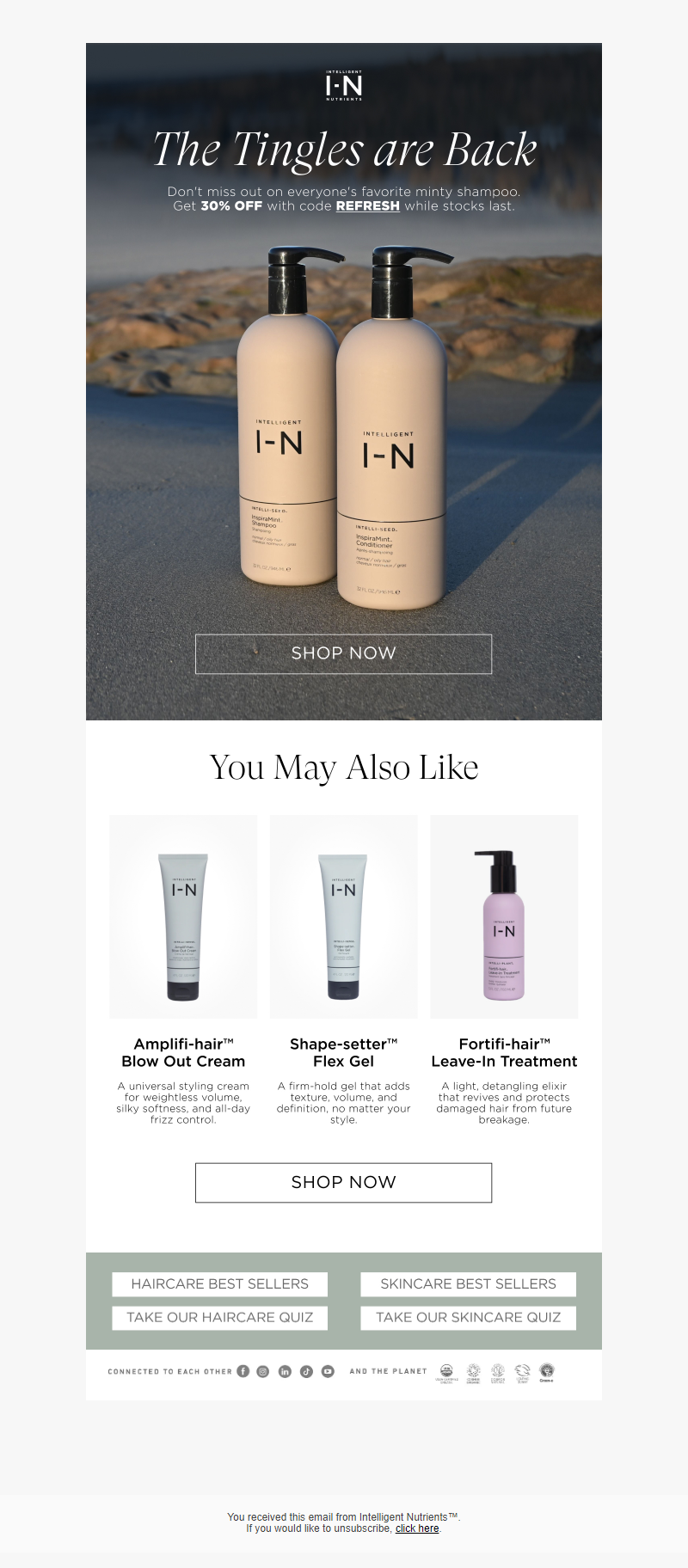Explore campaign email examples from Intelligent Nutrients, including promotions, newsletters, and product announcements. Built as a reference library for studying real ecommerce email execution.