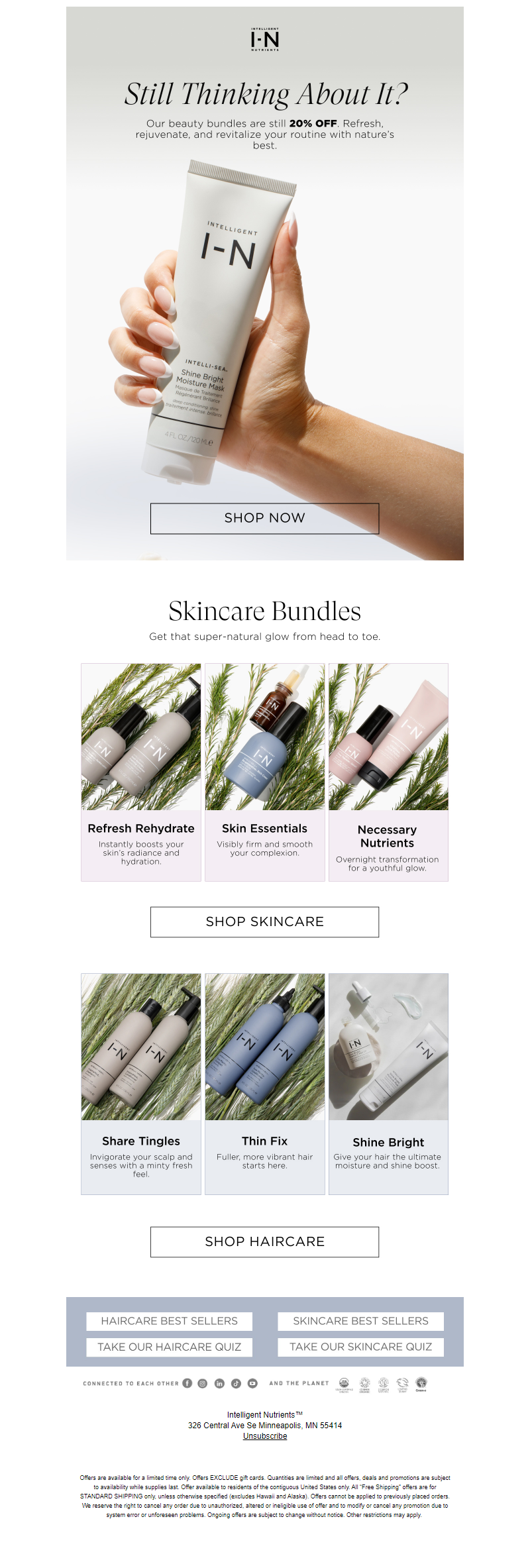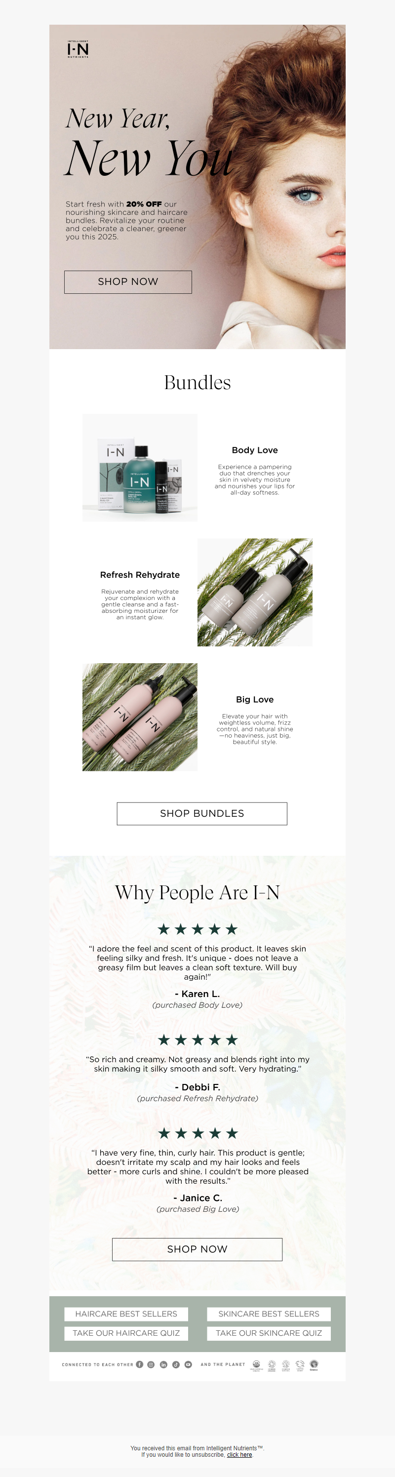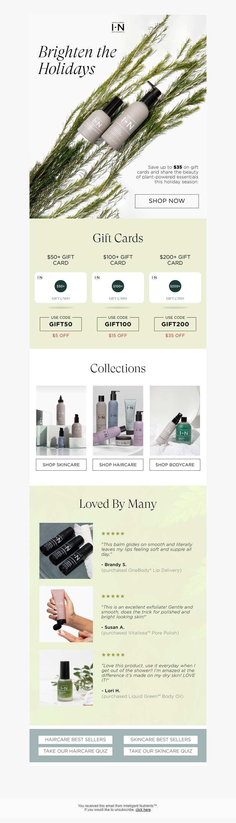 Explore campaign email examples from Intelligent Nutrients, including promotions, newsletters, and product announcements. Built as a reference library for studying real ecommerce email execution.