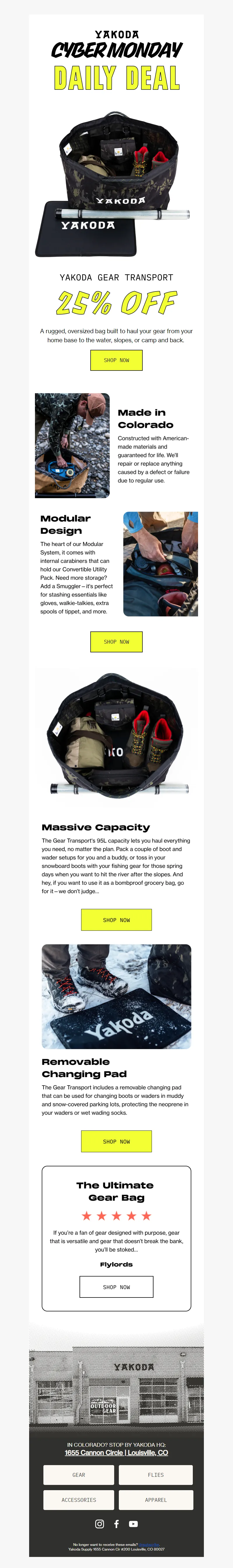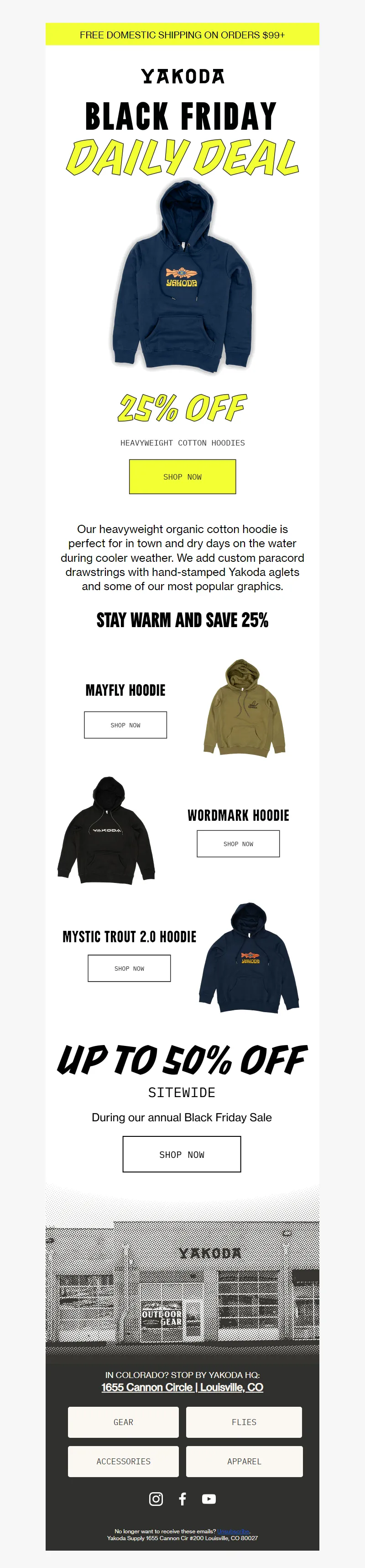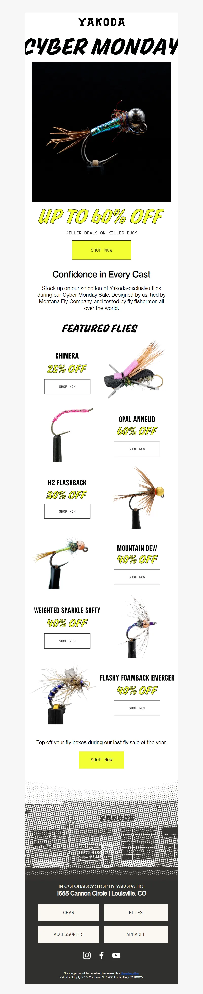 Explore campaign email examples from Yakoda, including promotions, newsletters, and product announcements. Built as a reference library for studying real ecommerce email execution.