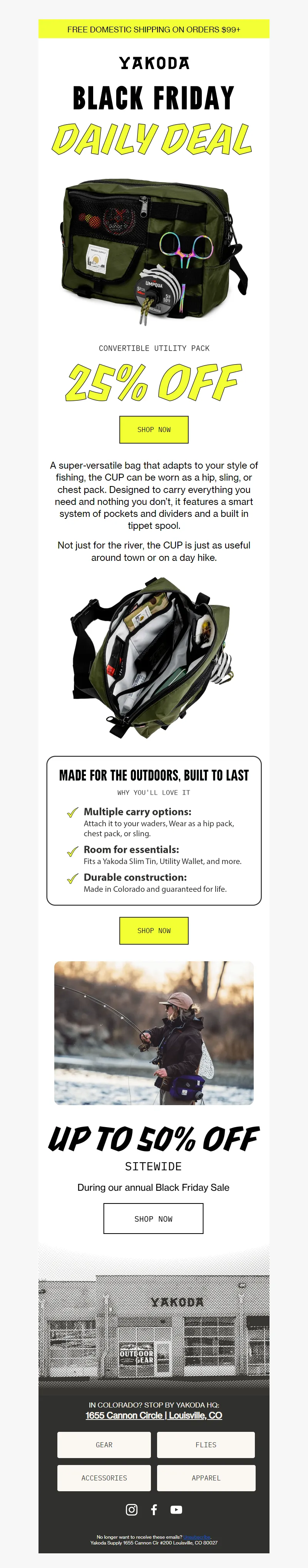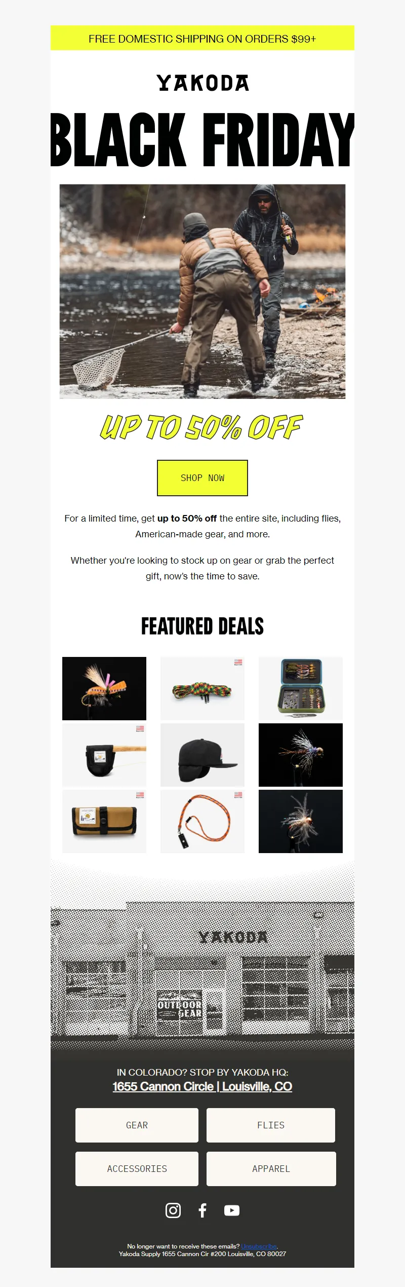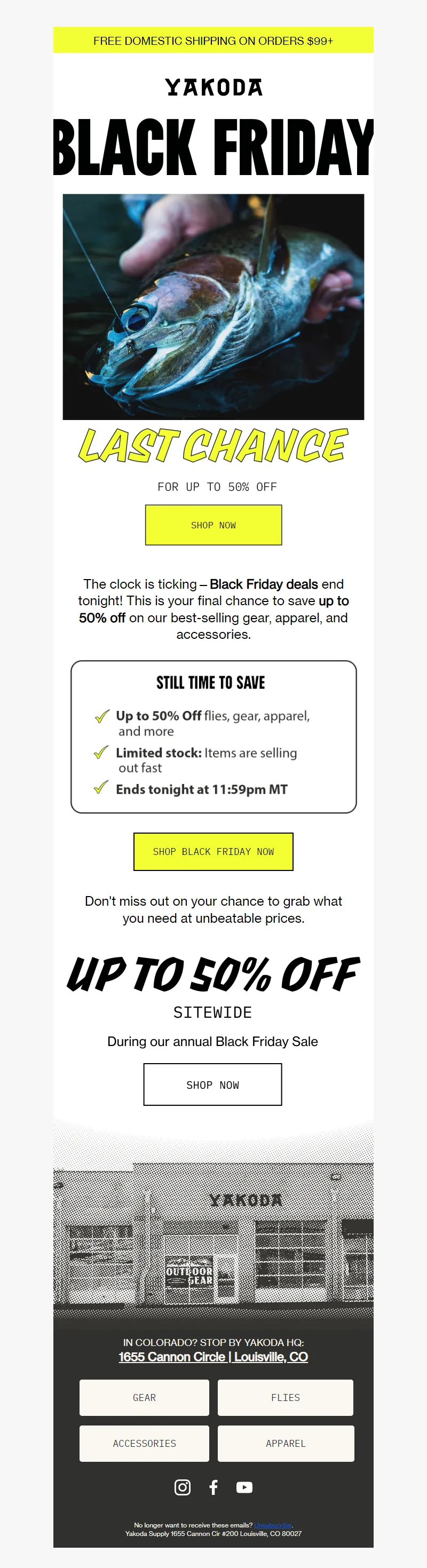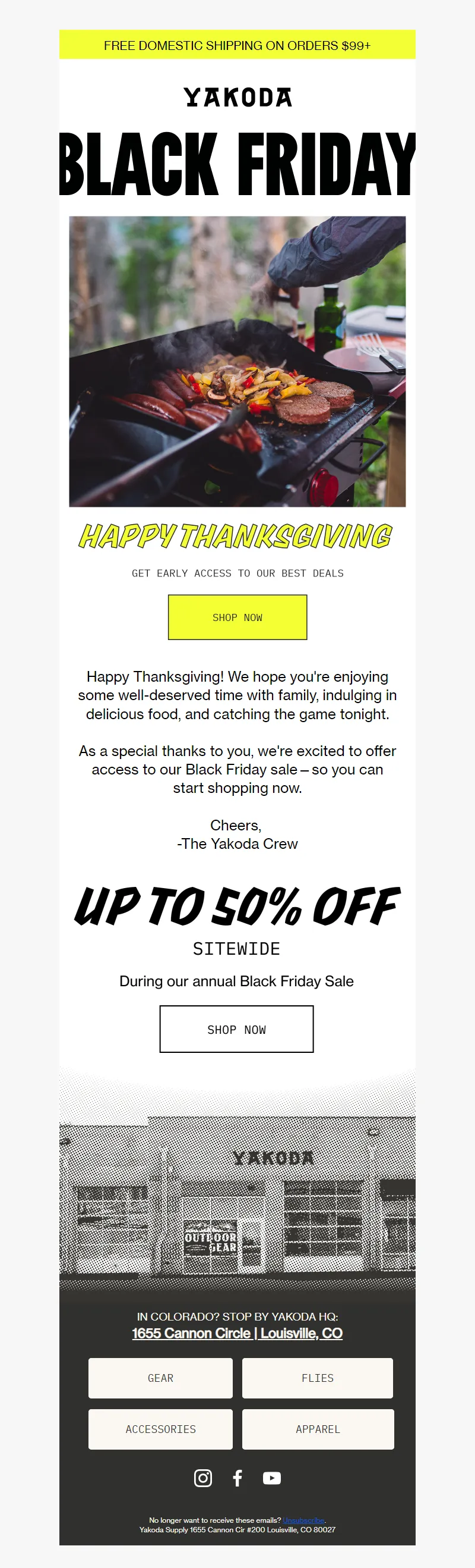 Explore campaign email examples from Yakoda, including promotions, newsletters, and product announcements. Built as a reference library for studying real ecommerce email execution.