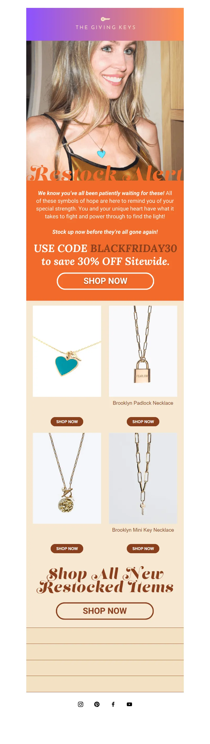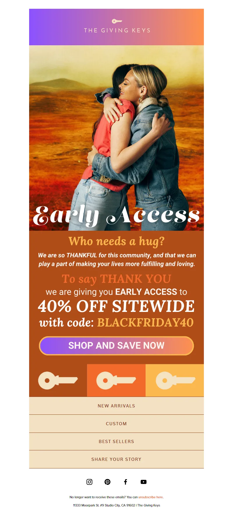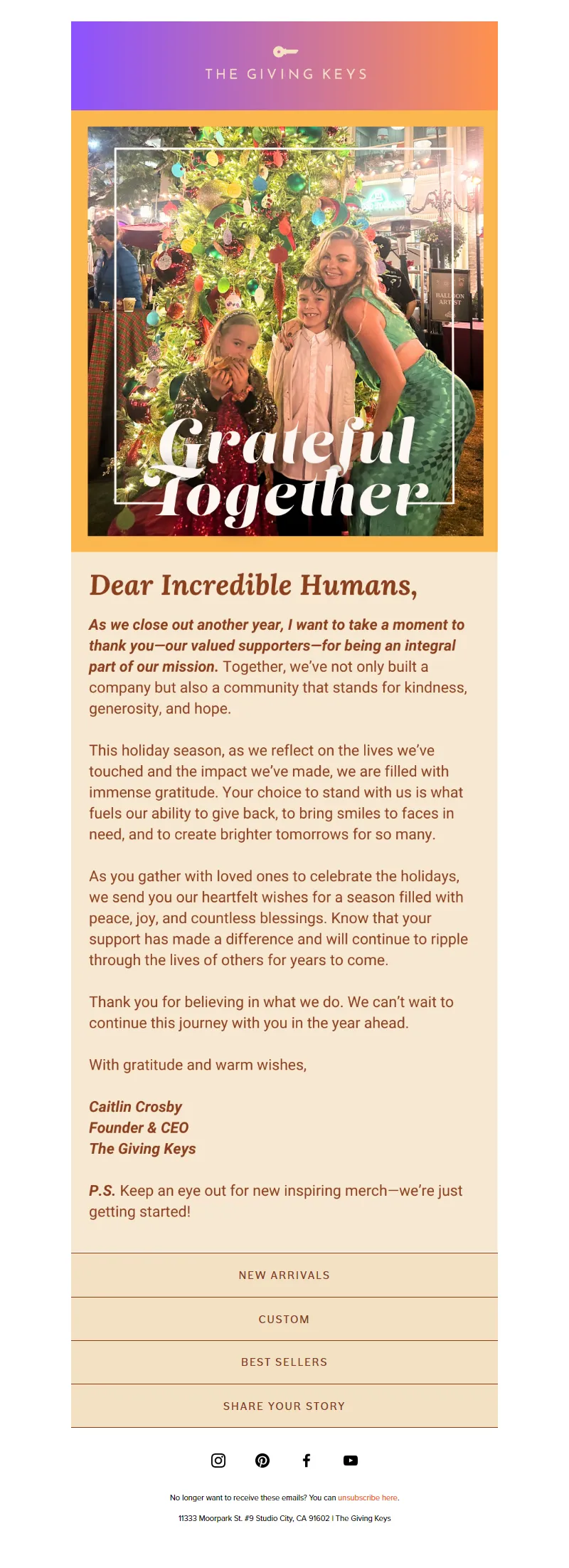 Explore campaign email examples from The Giving Keys, including promotions, newsletters, and product announcements. Built as a reference library for studying real ecommerce email execution.