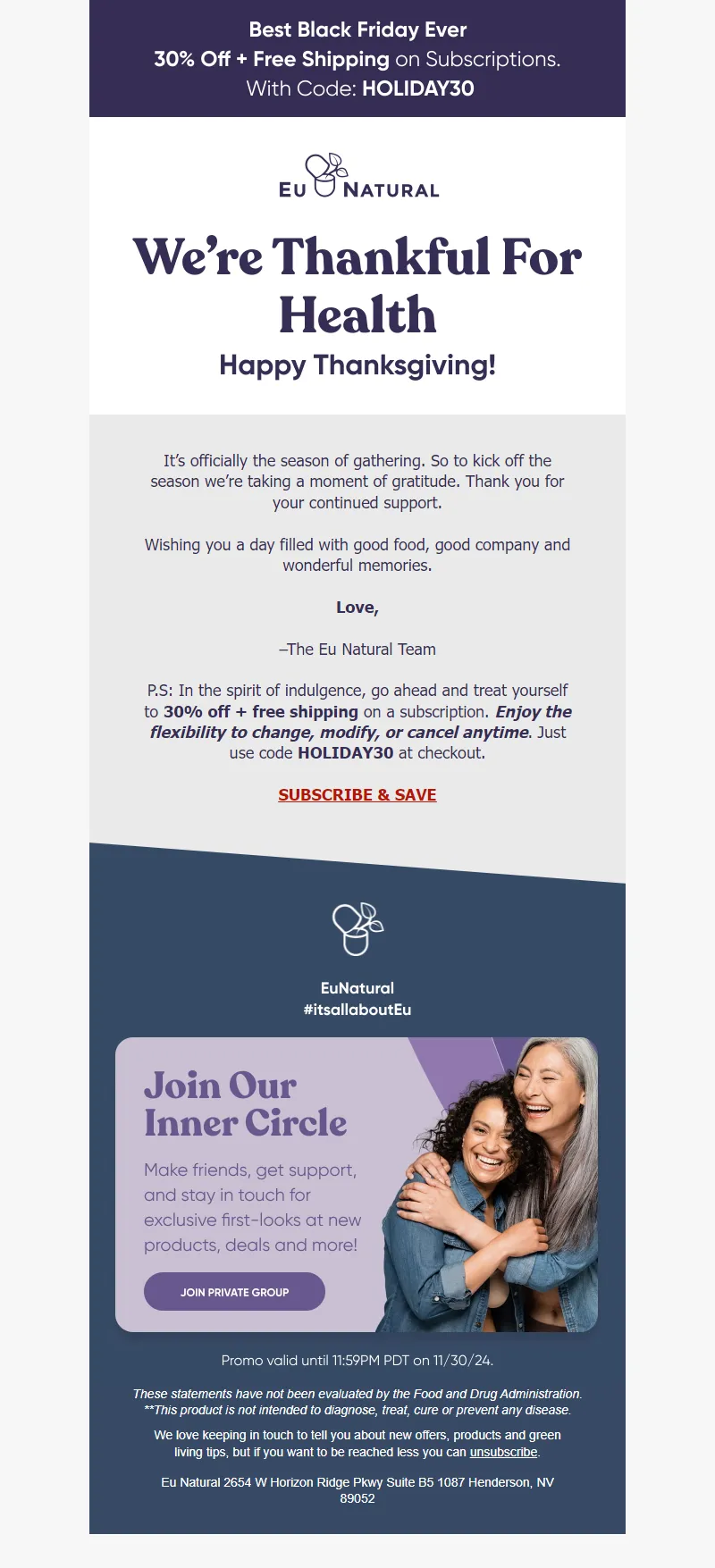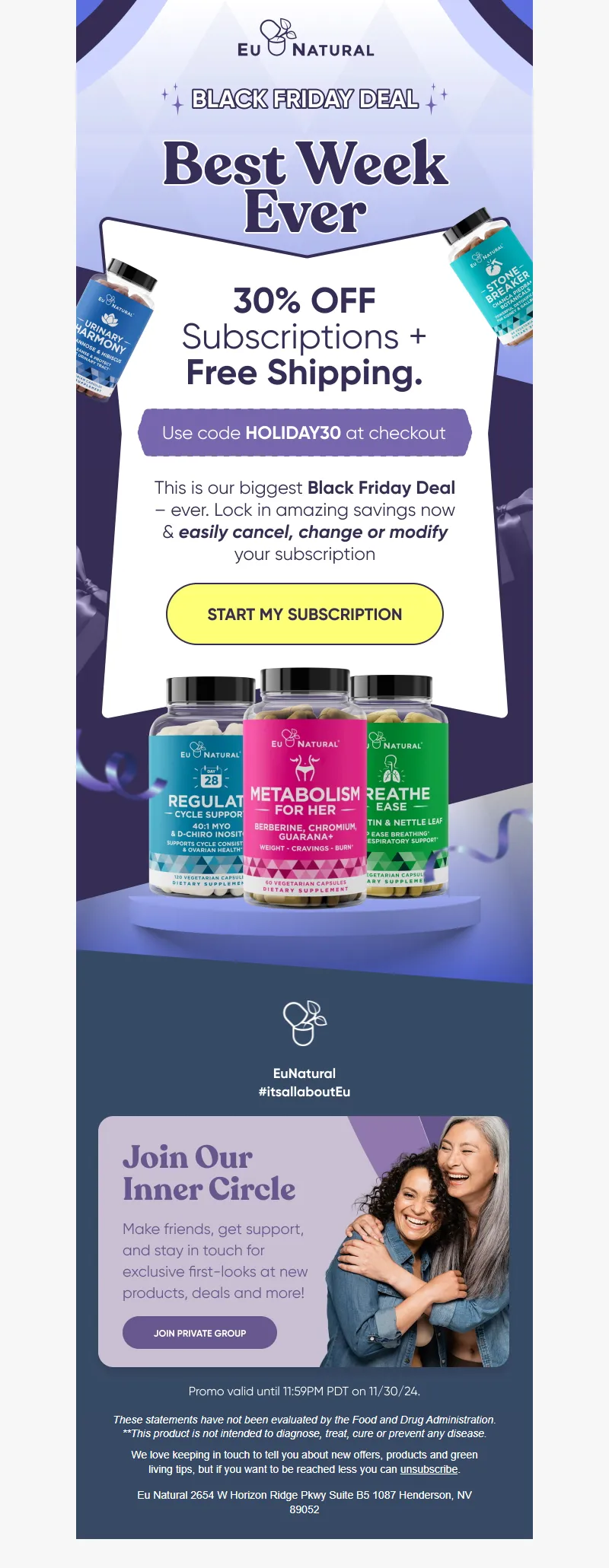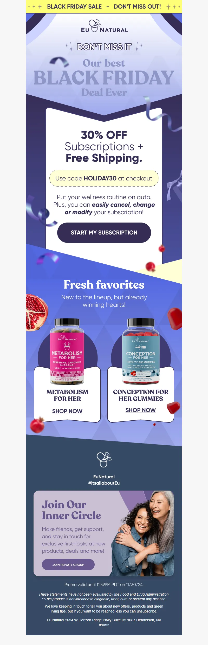 Explore campaign email examples from Eu Natural, including promotions, newsletters, and product announcements. Built as a reference library for studying real ecommerce email execution.