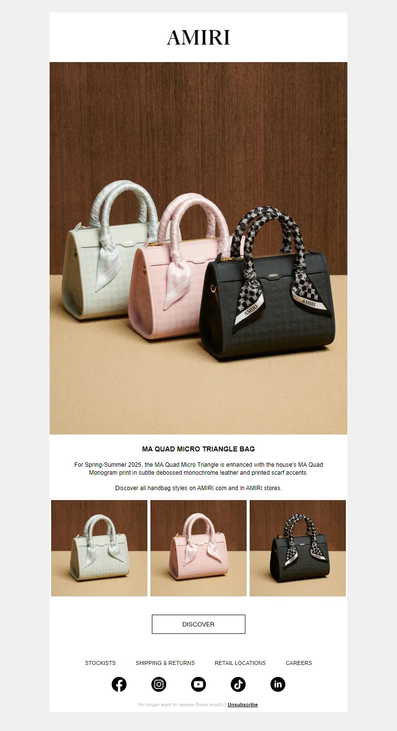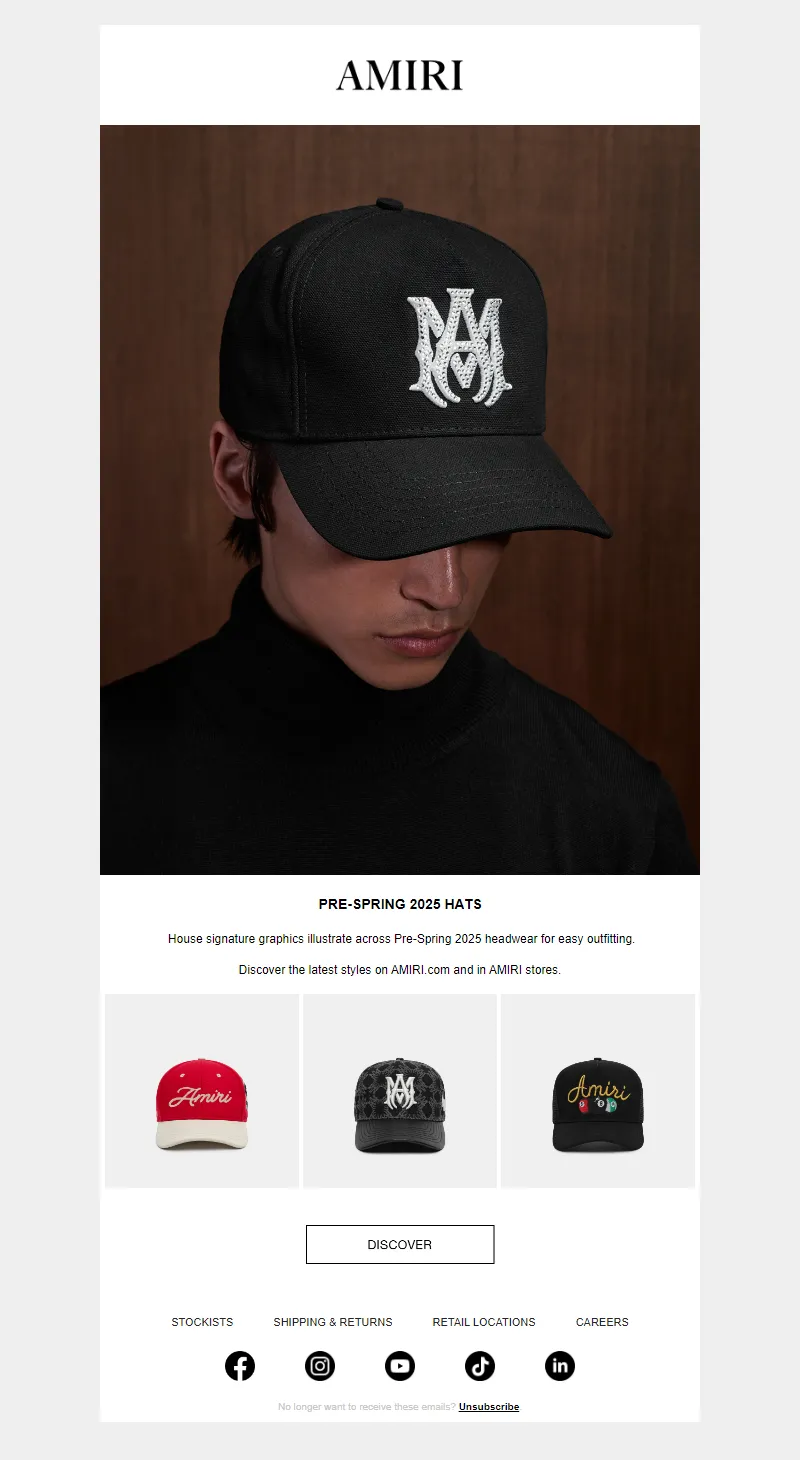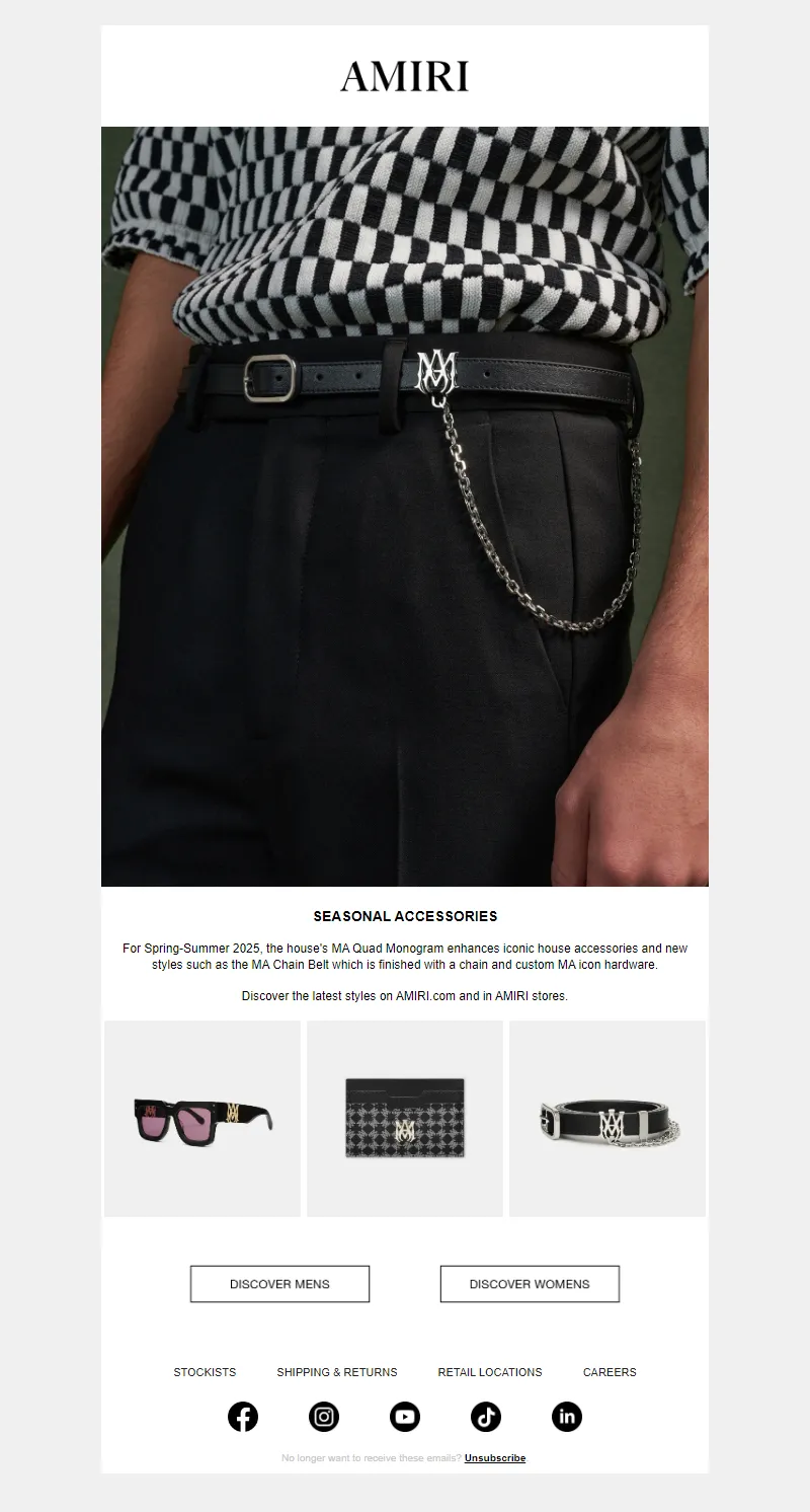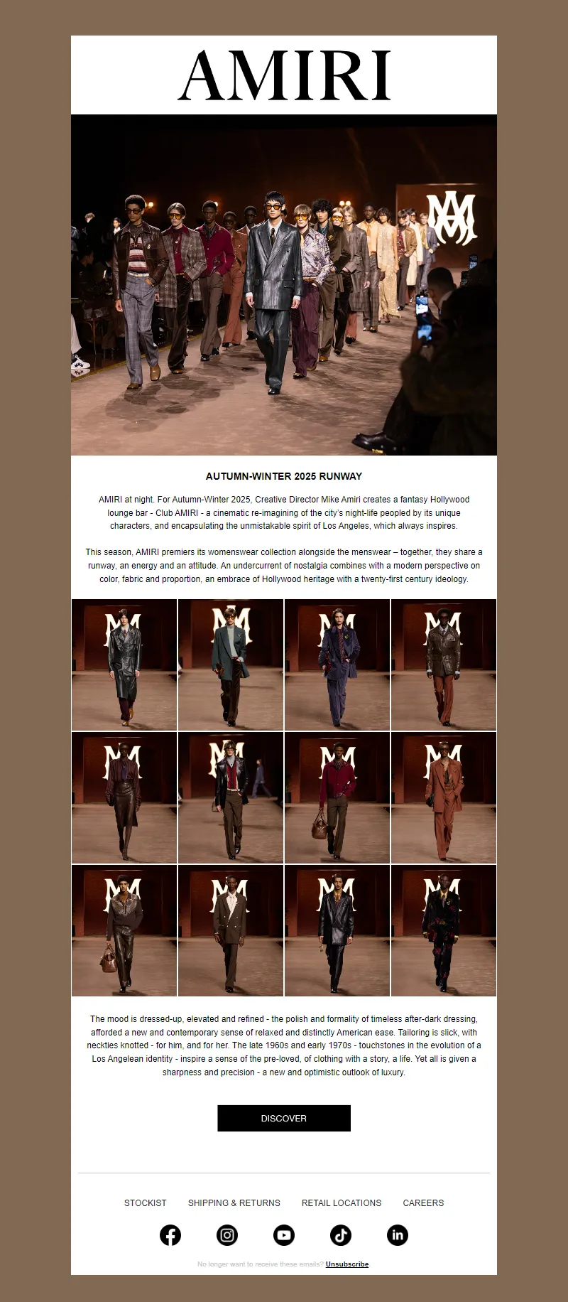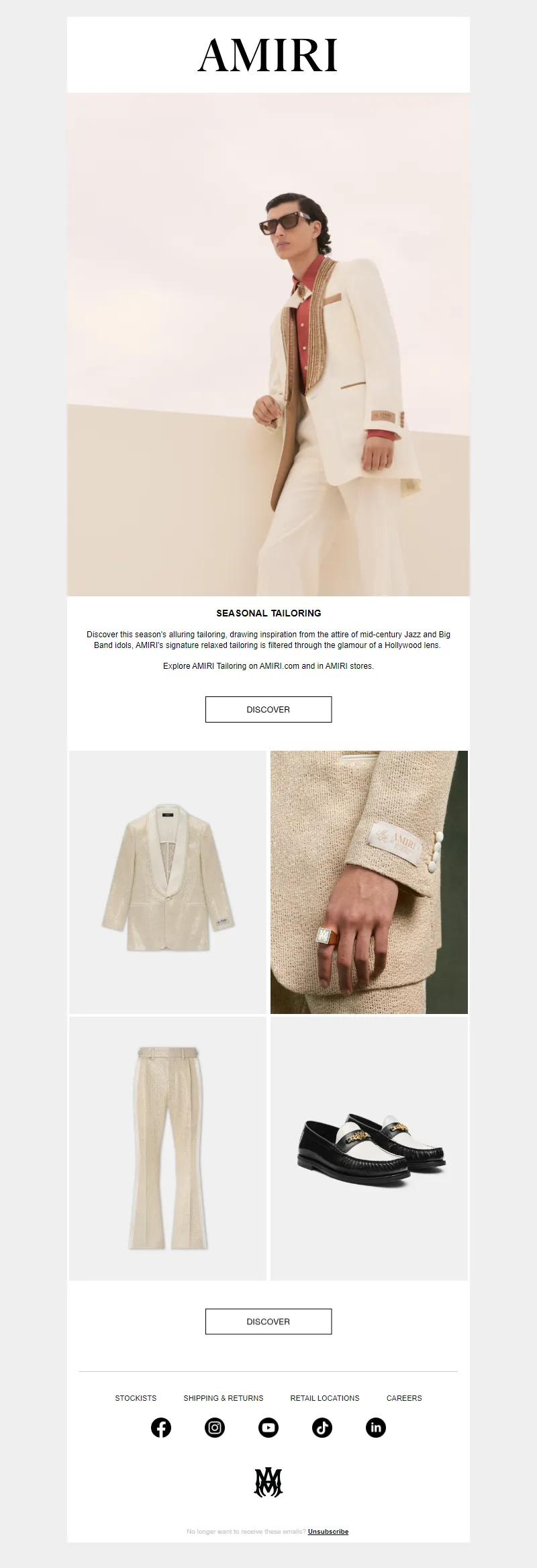 Explore campaign email examples from AMIRI, including promotions, newsletters, and product announcements. Built as a reference library for studying real ecommerce email execution.