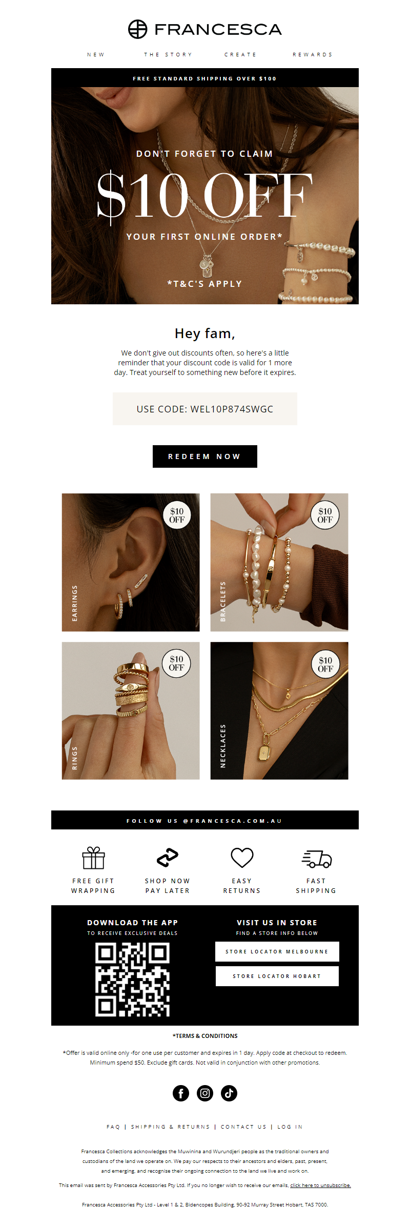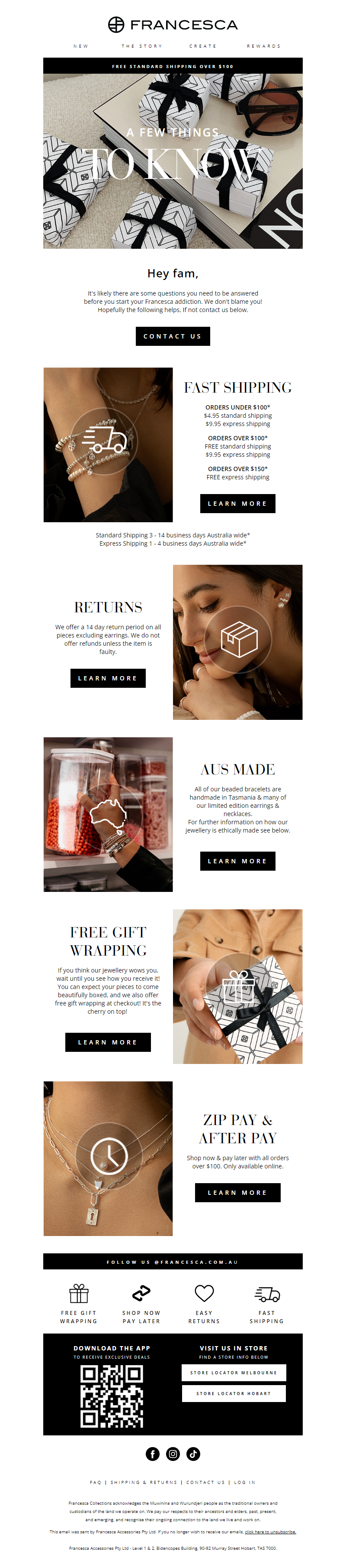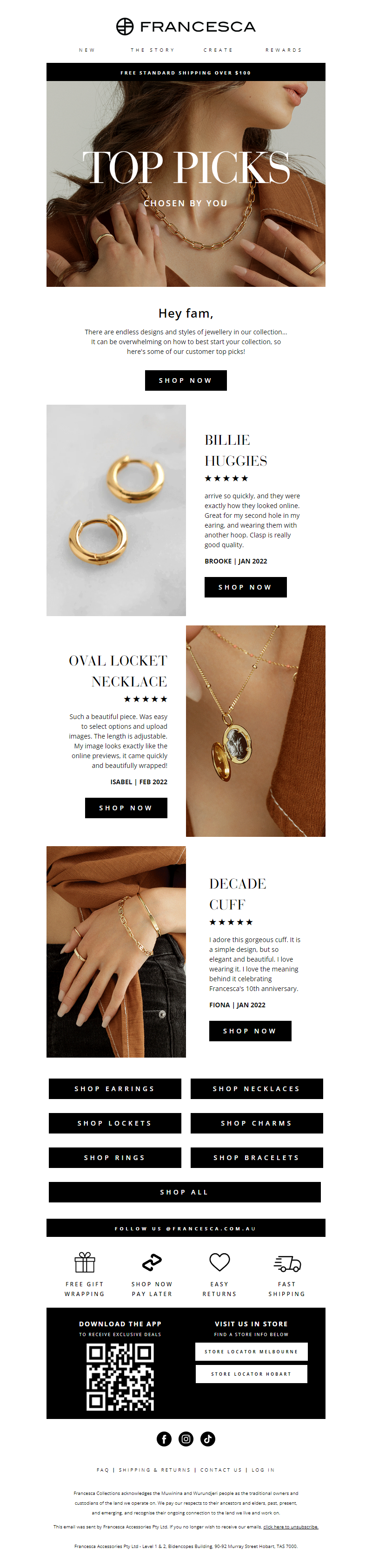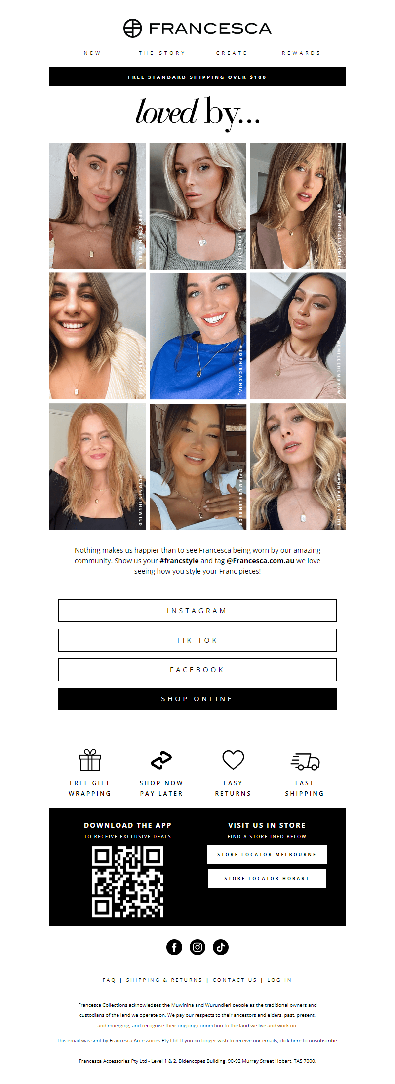 From small market stall to much-loved Australian brand, Francesa is the on-trend designer jewellery label by sisters Hannah & Rachel Vasicek. Working with sterling silver and solid gold, the two sisters meld their contrasting styles to create striking contemporary pieces. Known for the addictive Franc Stacks and limited edition collections, Francesca is a brand that understands and embraces the emotional significance behind a piece of jewellery. Designed in Hobart, Tasmania and created both locally and abroad, Francesca pieces are filled with laughter and love every step of the way. See more