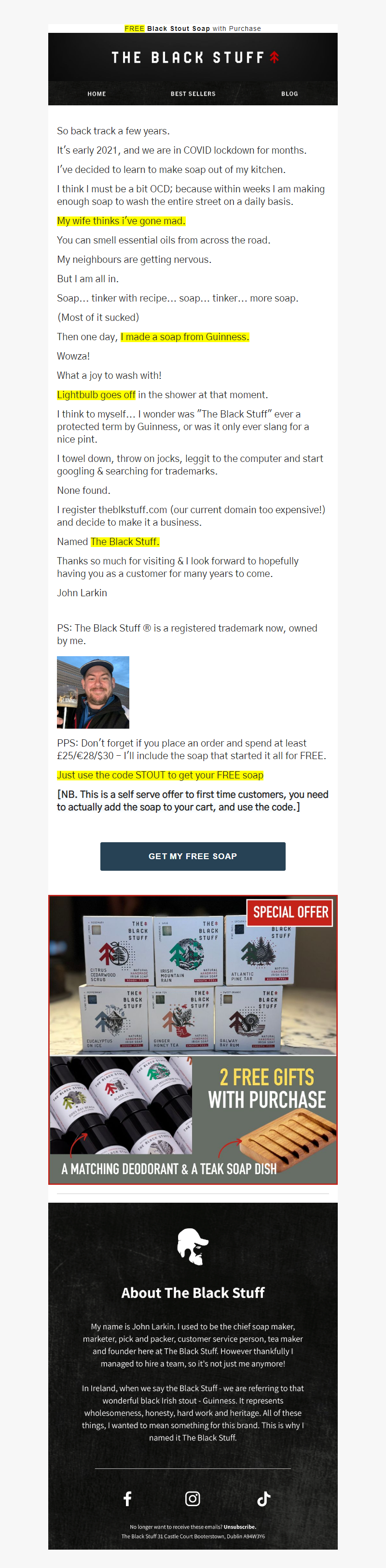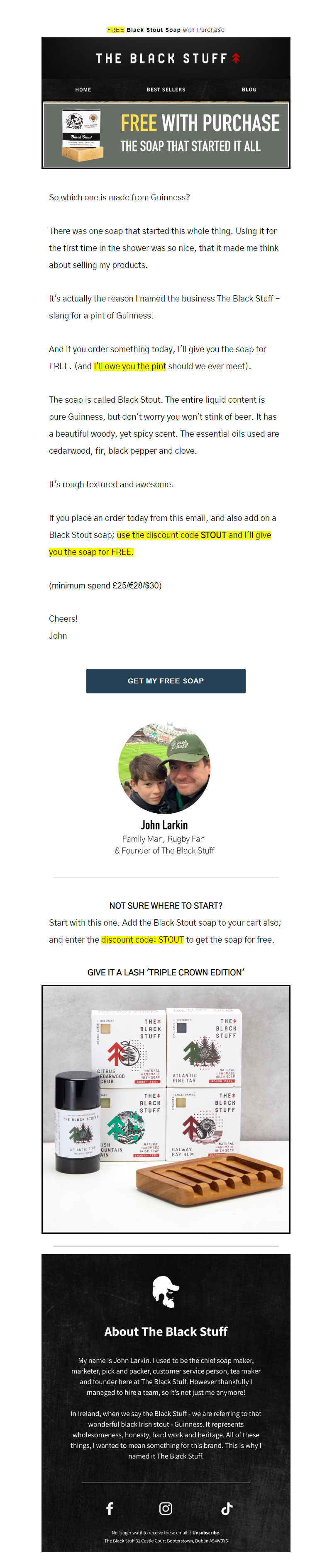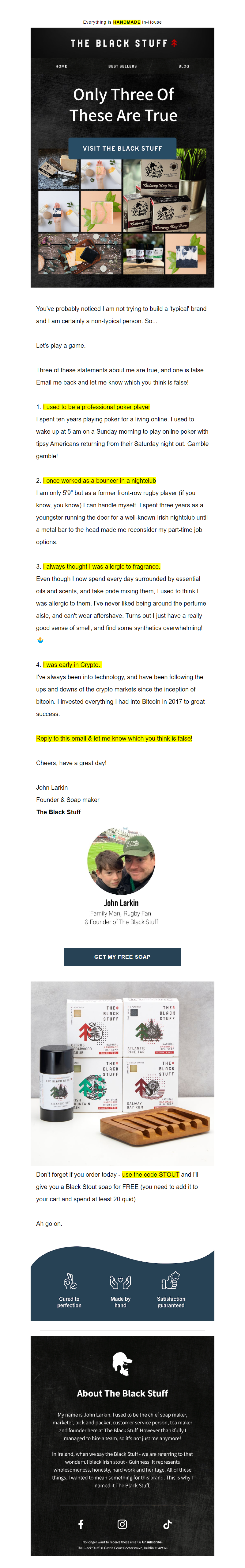Natural handmade Irish soap and natural deodorant for men. We use only natural ingredients and unique things like Guinness, Seaweed and Pine Tar to create unique handcrafted natural soap for men. Find out more at https://theblkstuff.com See more