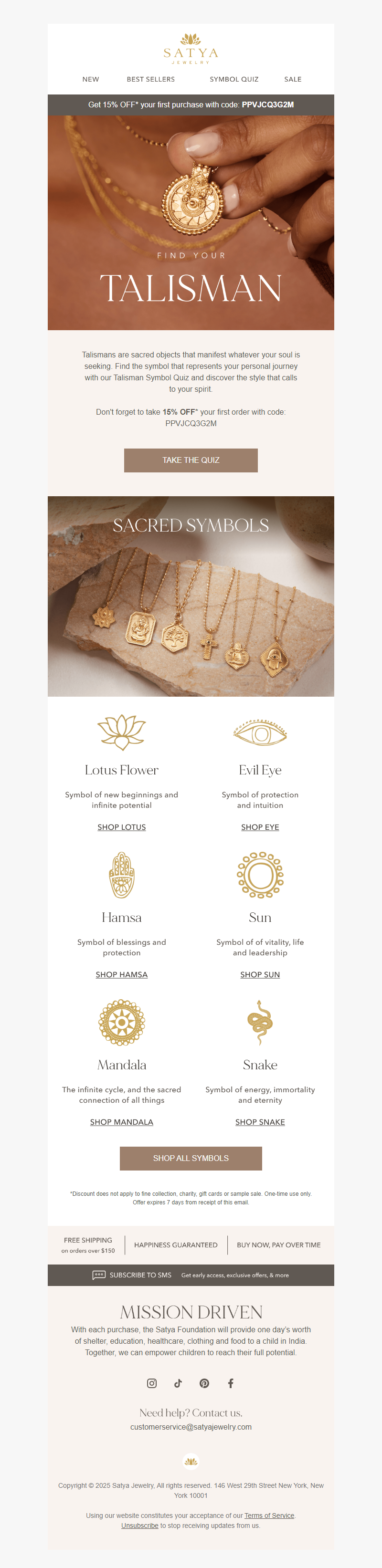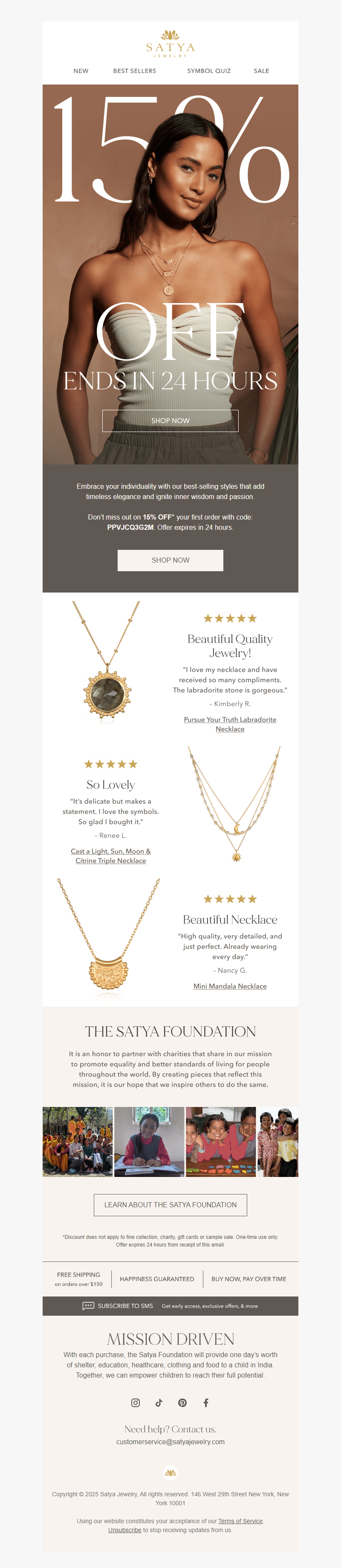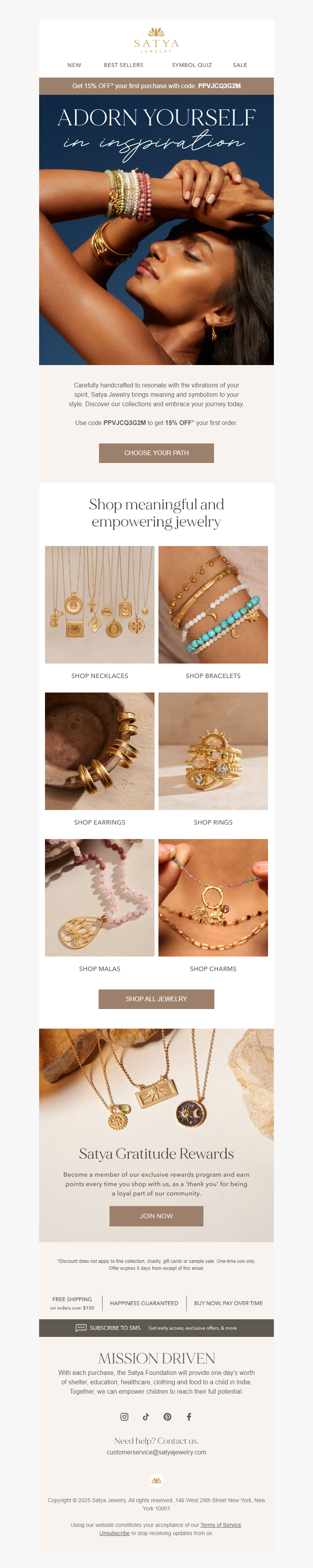 Satya Jewelry is created with simplicity, style and global consciousness. Semi-precious gemstones renowned for their ancient healing properties are combined with 18kt gold plate, sterling silver and sacred symbols to create jewelry that brings peace and hope to its wearers. Rooted in its mission to inspire each person's own individual truth, Satya Jewelry brings a feeling of purpose and empowerment. See more