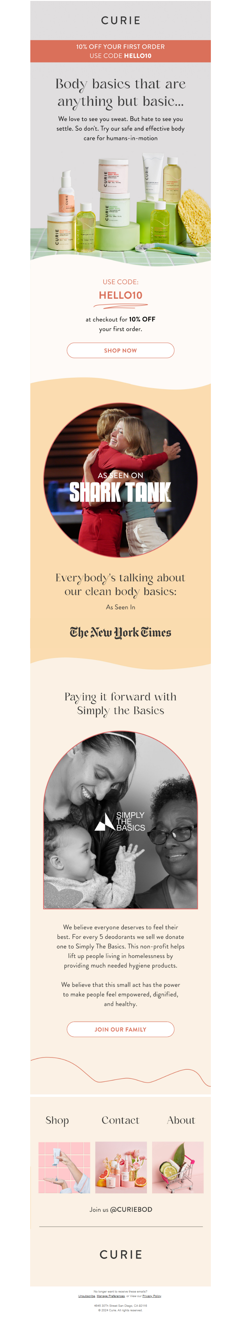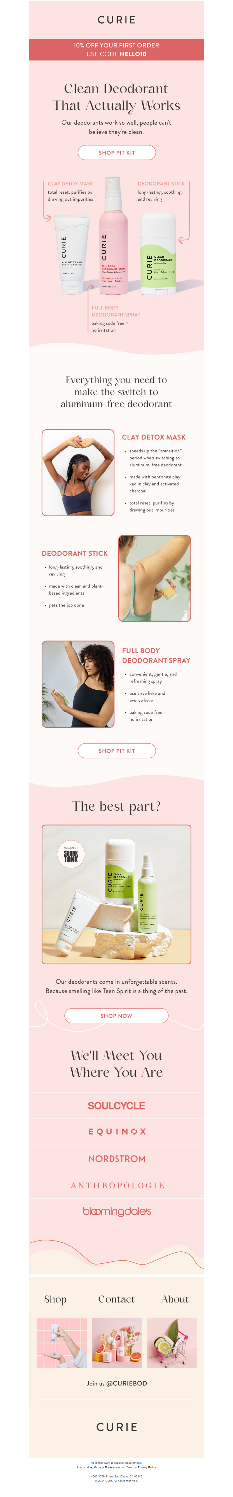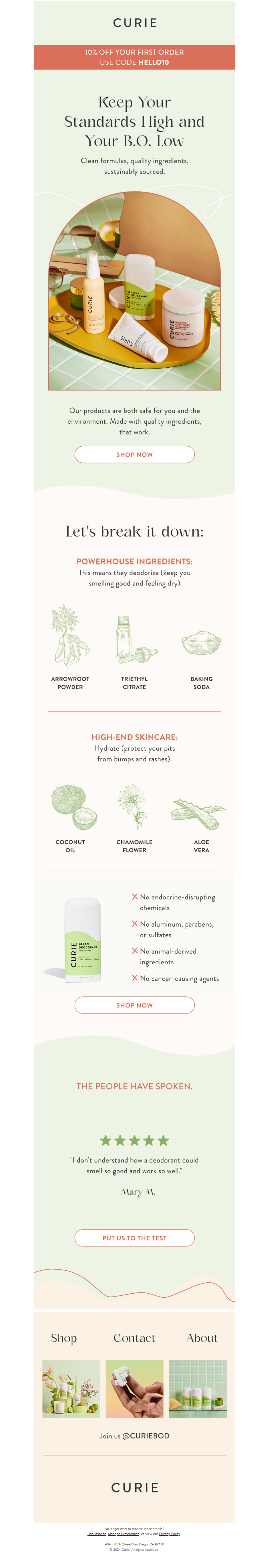 Clean everyday essentials for humans in motion. Available online www.curiebod.com.
