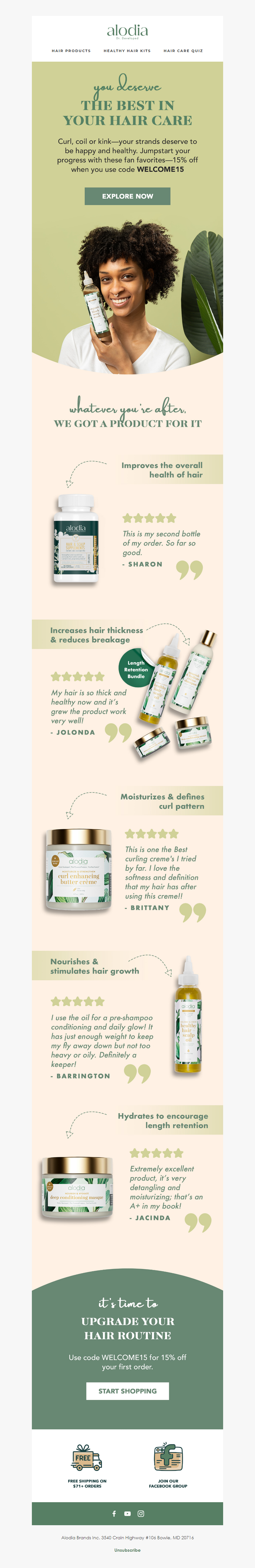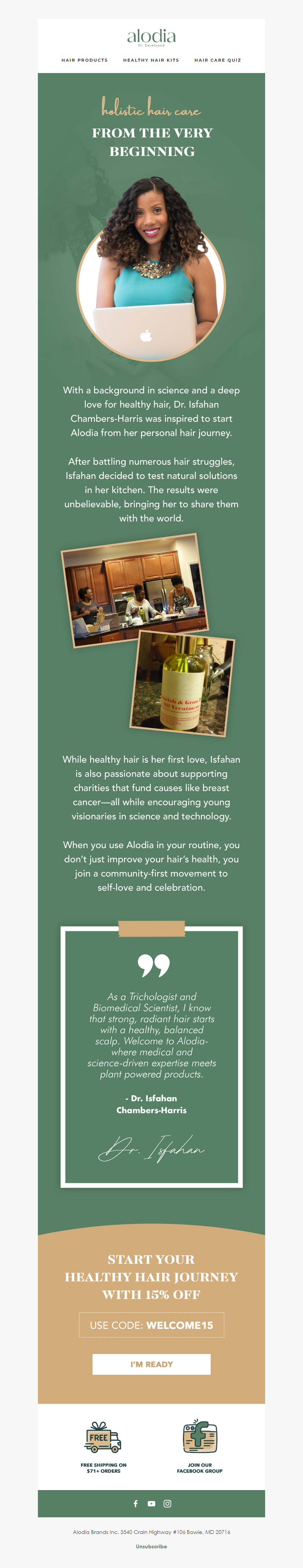 Created by a PhD Scientist, Trichologist and MD Physician, Alodia is a clinically proven hair and scalp care line that uses virtual hair and scalp consultations and personalized regimens to help resolve chronic scalp conditions and help with hair care styling. We also provide organic plant based products that use scientifically proven ingredients to provide a healthy scalp and length retention. See more