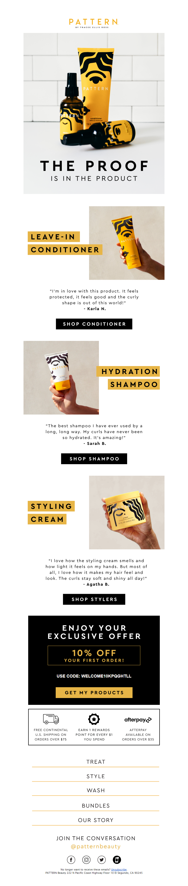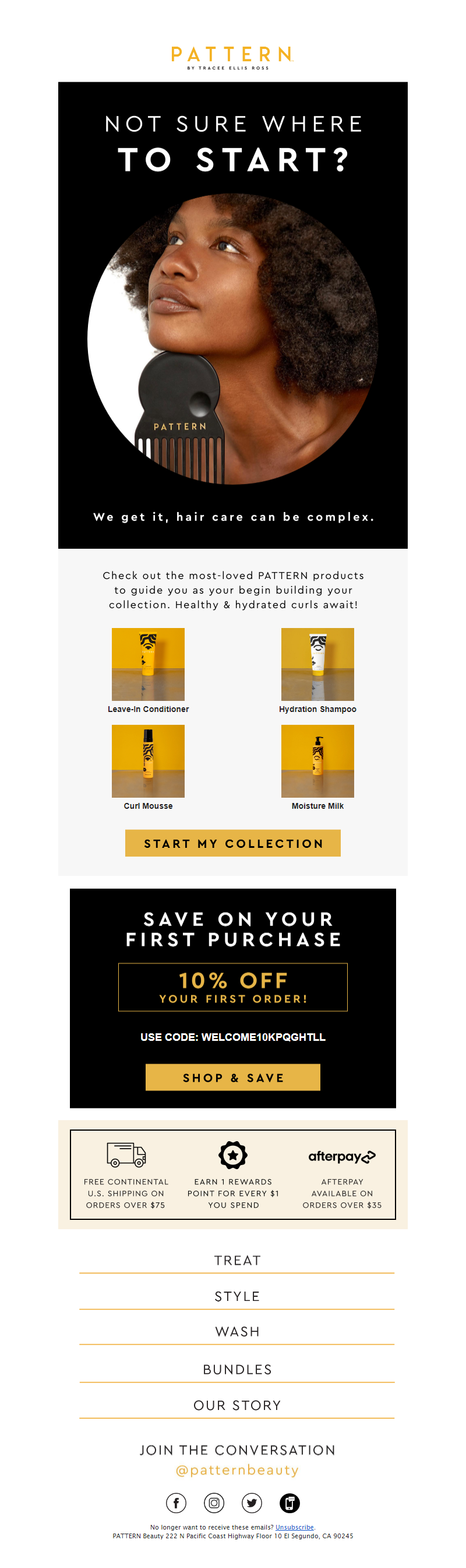 Pattern Beauty, founded by Tracee Ellis Ross, is a haircare line designed to exceed the beauty needs of the curly, coily, and tight-textured masses. We are grounded in and centered around the celebration of Black beauty and creating a space for empowering and loving authentic beauty. Available at retailers including Ulta Beauty, Sephora (US + CAN), Macys, Boots and Ulta Beauty at Target, PATTERN is not only disrupting and redefining prestige hair care, we are doing so with innovative formulas and unrivaled content. PATTERN offers products in the wash, style, treat and heat categories, having won numerous awards from Allure, Ebony, ESSENCE, Marie Claire, and New Beauty. See more