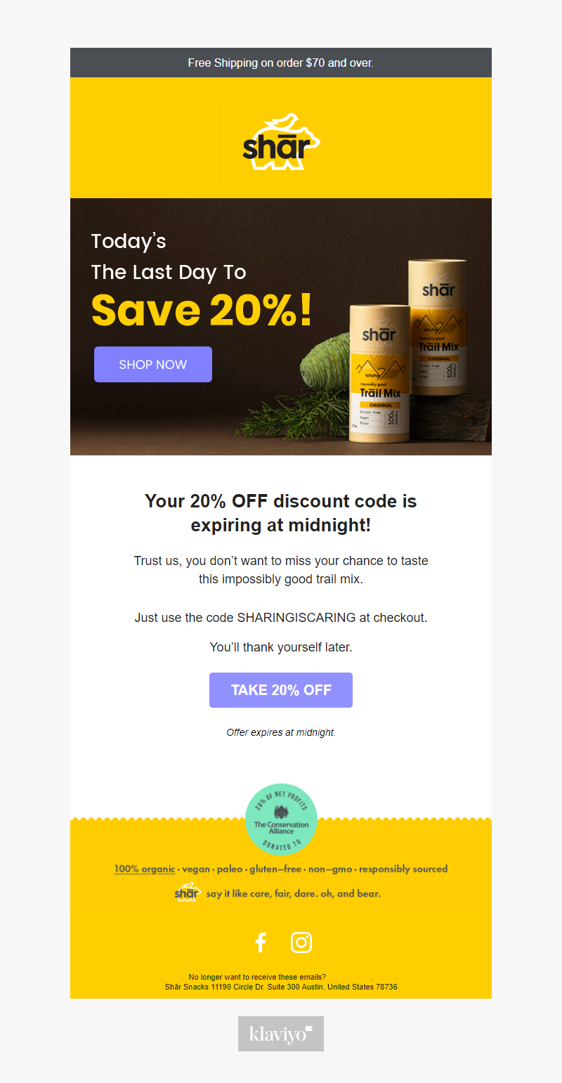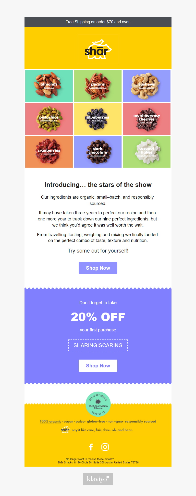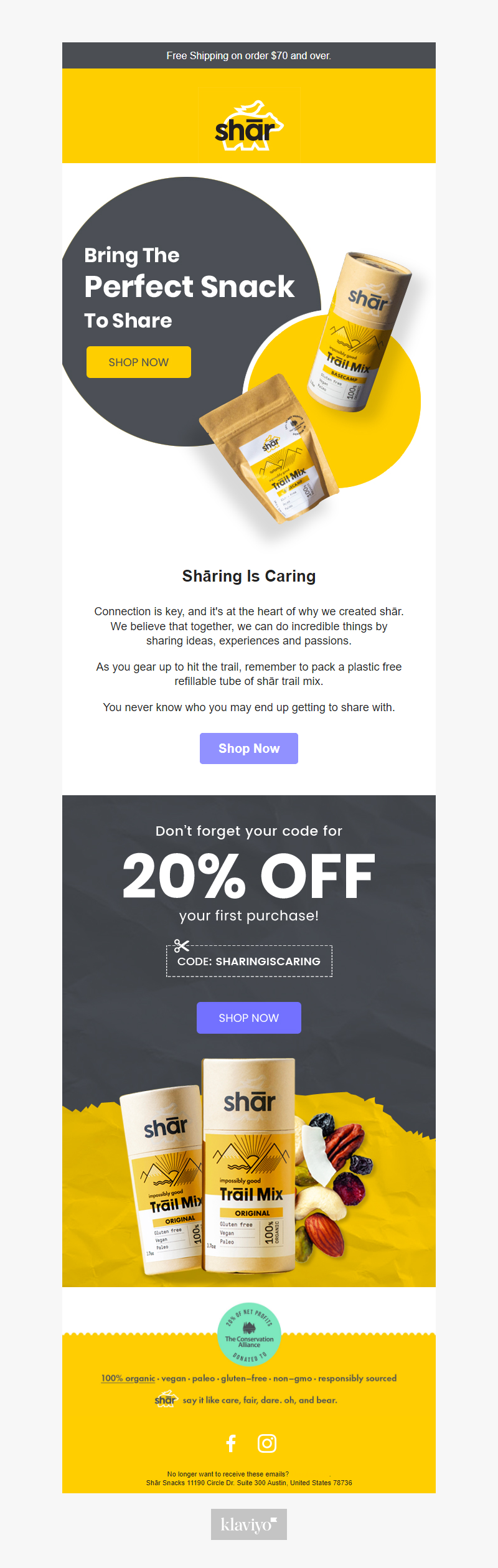 We make delicious, healthy snacks using 100% organic ingredients that are responsibly-sourced from small family farms. There are no preservatives, stabilizers or sweeteners of any kind – just clean ororganic ingredients grown the way nature intended. Our recipe is vegan, paleo & gluten-free. We're an "earth-first" company with a mission to help the planet by avoiding single-use and headed-for-the-landfill packaging. We are proud to introduce our new "shār-tube" which is made from recycled paper. It's also recyclable, biodegradable and compostable. More importantly it's the first snack in a reusable and refillable format. We also give back. We donate 20% of our net profits to The Conservation Alliance and we're in the process of becoming Climate Neutral Certified. See more
