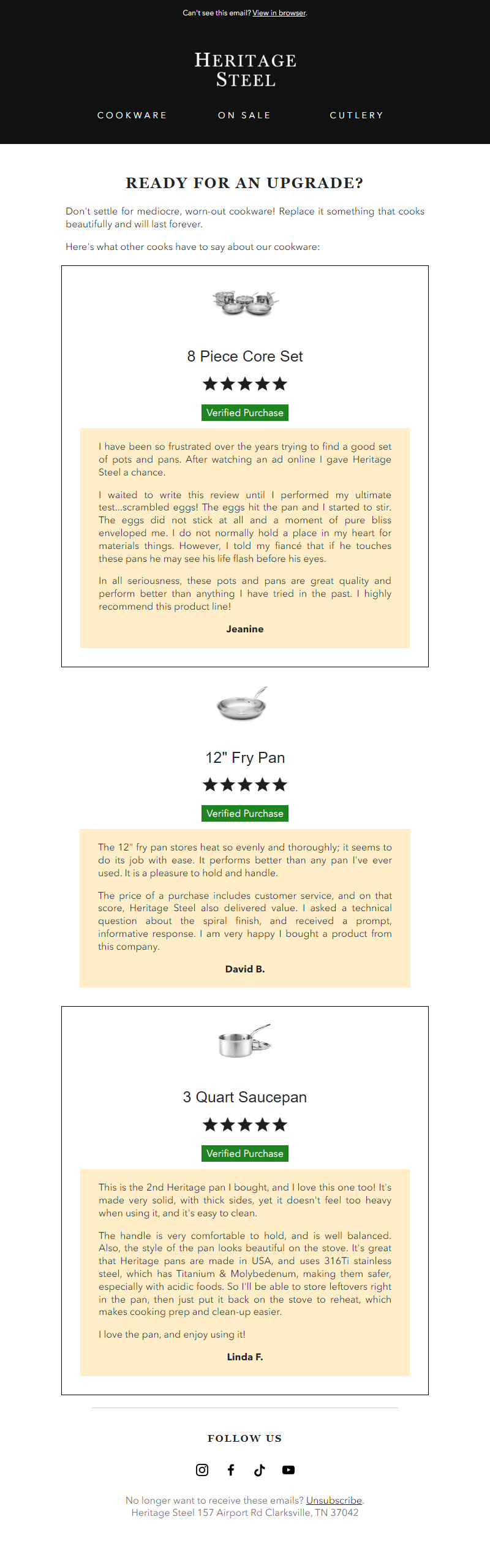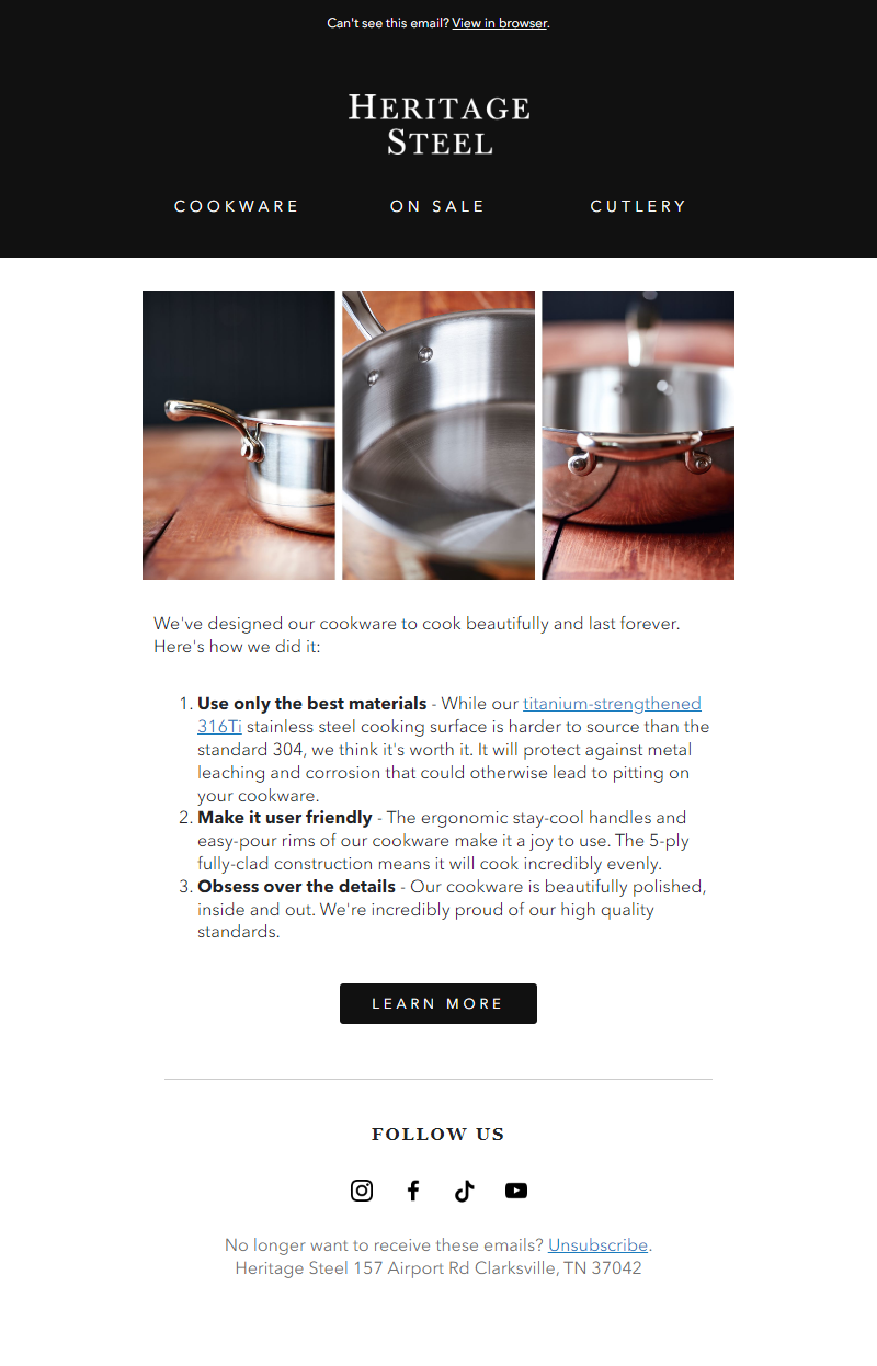 Heritage Steel is a family-owned cookware manufacturer in Clarksville, TN. Our cookware is the culmination of over 40 years experience crafting specialty multiclad stainless steel cookware in the USA, and is made with only the highest quality materials and superior craftsmanship. In addition to our cookware, we also offer Hammer Stahl Cutlery and Kitchen products. Our mission is to equip home cooks with quality tools at an affordable price, empowering a lifetime great cooking. See more