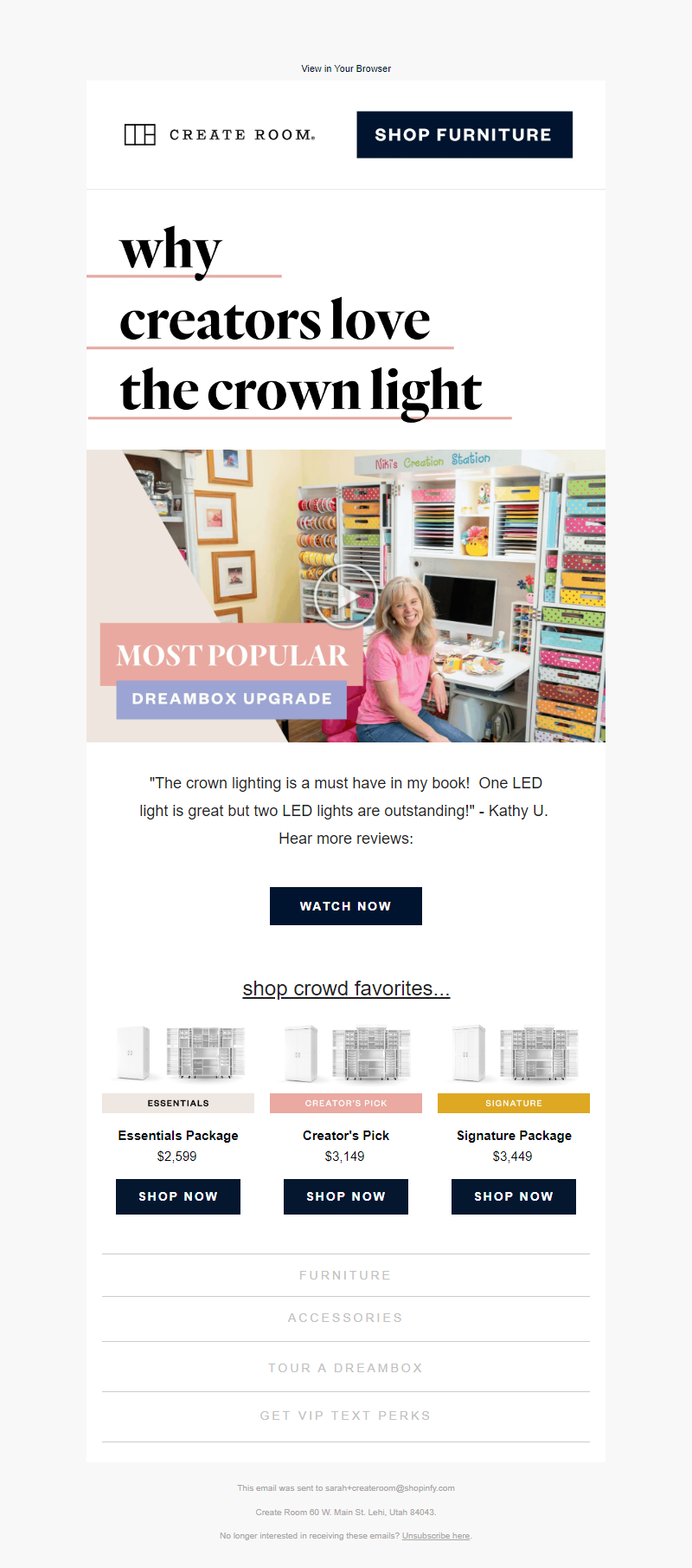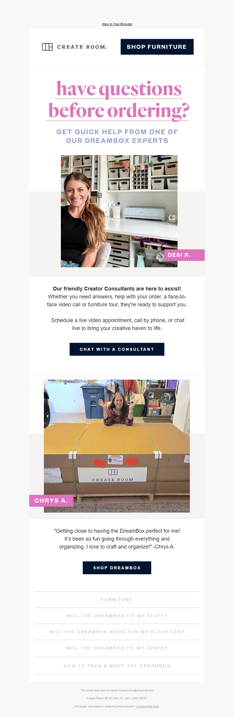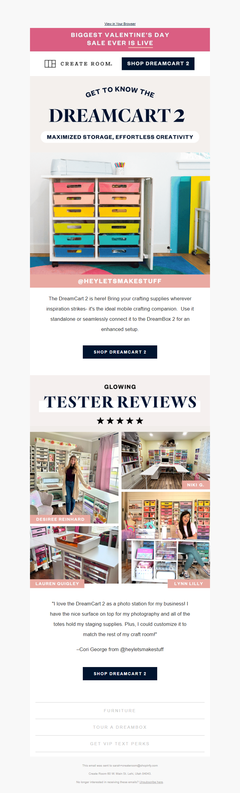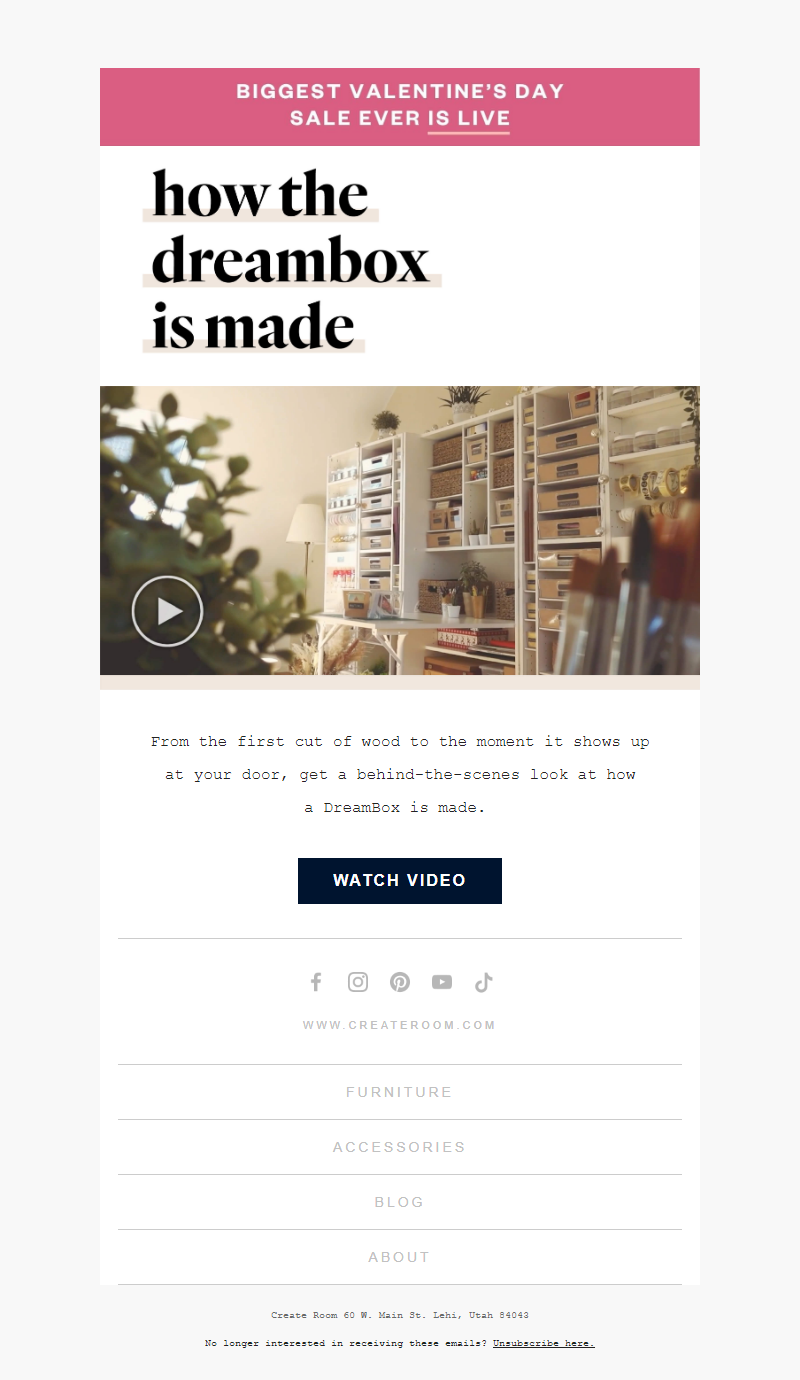 According to a recent study, less than 20% of women make time for themselves everyday. In our fast paced world, it can be difficult to find the time and space. Create Room™ is on a mission to help p people create room in their lives for more joy and fulfillment through creativity, starting with a dedicated workspace. The DreamBox, a hide away cabinet complete with customizable shelving, stowaway tables, and 85,000 cubic inches of storage space, is designed to make creativity more accessible—with all your tools and supplies in sight and within reach. Founded in 2005, Create Room (formerly The Original ScrapBox™) is dedicated to providing high quality products to crafters everywhere. The DreamBox is manufactured in the USA from the finest materials for long-lasting durability and timeless beauty. See more