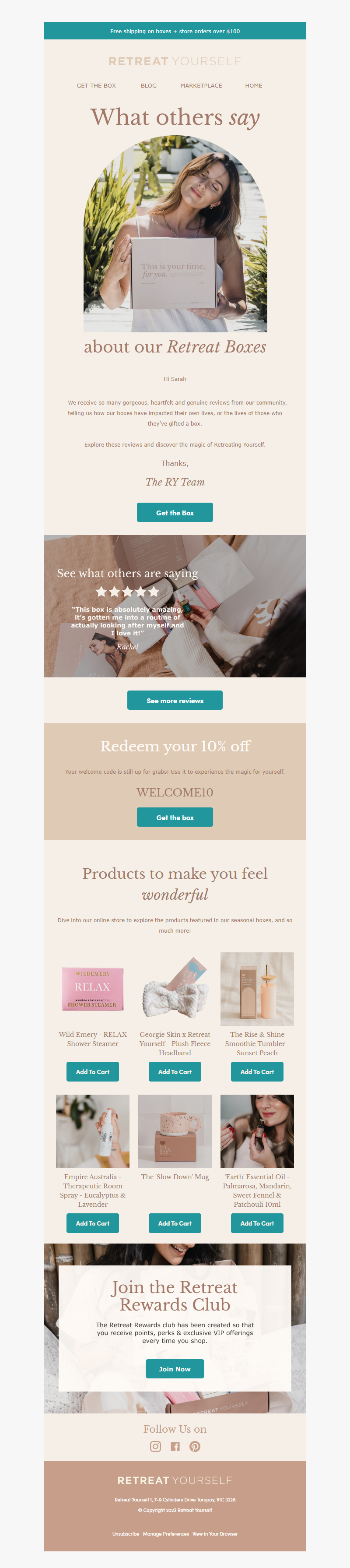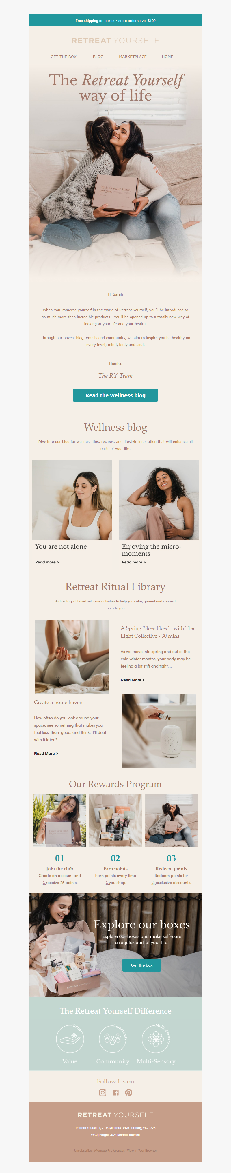 Retreat Yourself is an Australian-based holistic wellness hub, created to support people to truly believe in the value of taking care of themselves, and supporting them to transform how they live their daily lives. We do this by providing consumers with holistic health & wellness ‘tools' - products, education, information, resources, habits & rituals, all wrapped up in a luxe, interactive ‘retreat in a box' offering. And for our brand partners? We offer the best, conscious AU & NZ brands direct access to have their products trialled by Australian women, as well as gain mass brand awareness as part of our successful, 3-monthly partnership program. See more